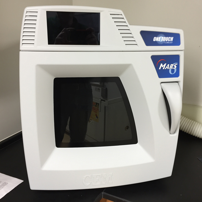 The CEM Mars 6 Microwave Digestion System digests solid and liquid samples for further analysis.