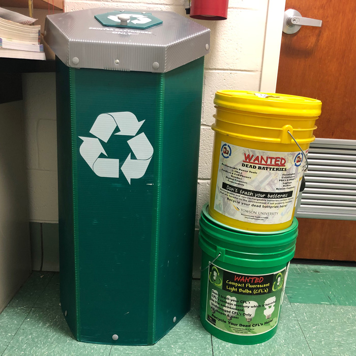 At TU, paper, plastic, glass and metal can be placed in one bin. All items must be