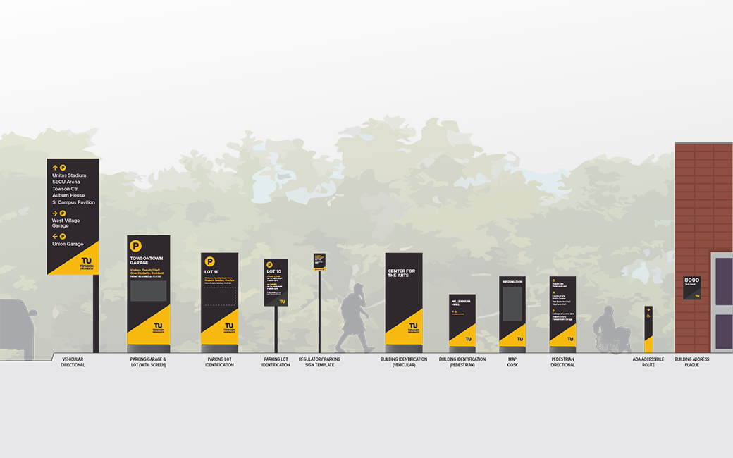 - Directional signage should reflect the appearance of the campus wayfinding system.