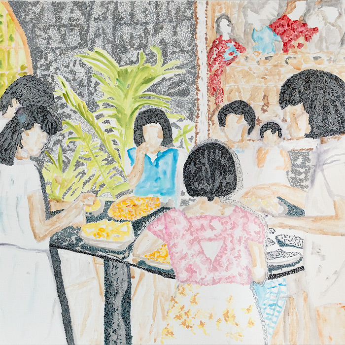 Lek Vercauteren Borja’s mixed media works explore the personal and social impact of Spanish colonization and American imperialism on the Filipino experience. Vercauteren Borja weaves history with personal experience to draw out broader contemporary Filipino American stories of identity, displacement, trauma, survival, resilience, and belonging.