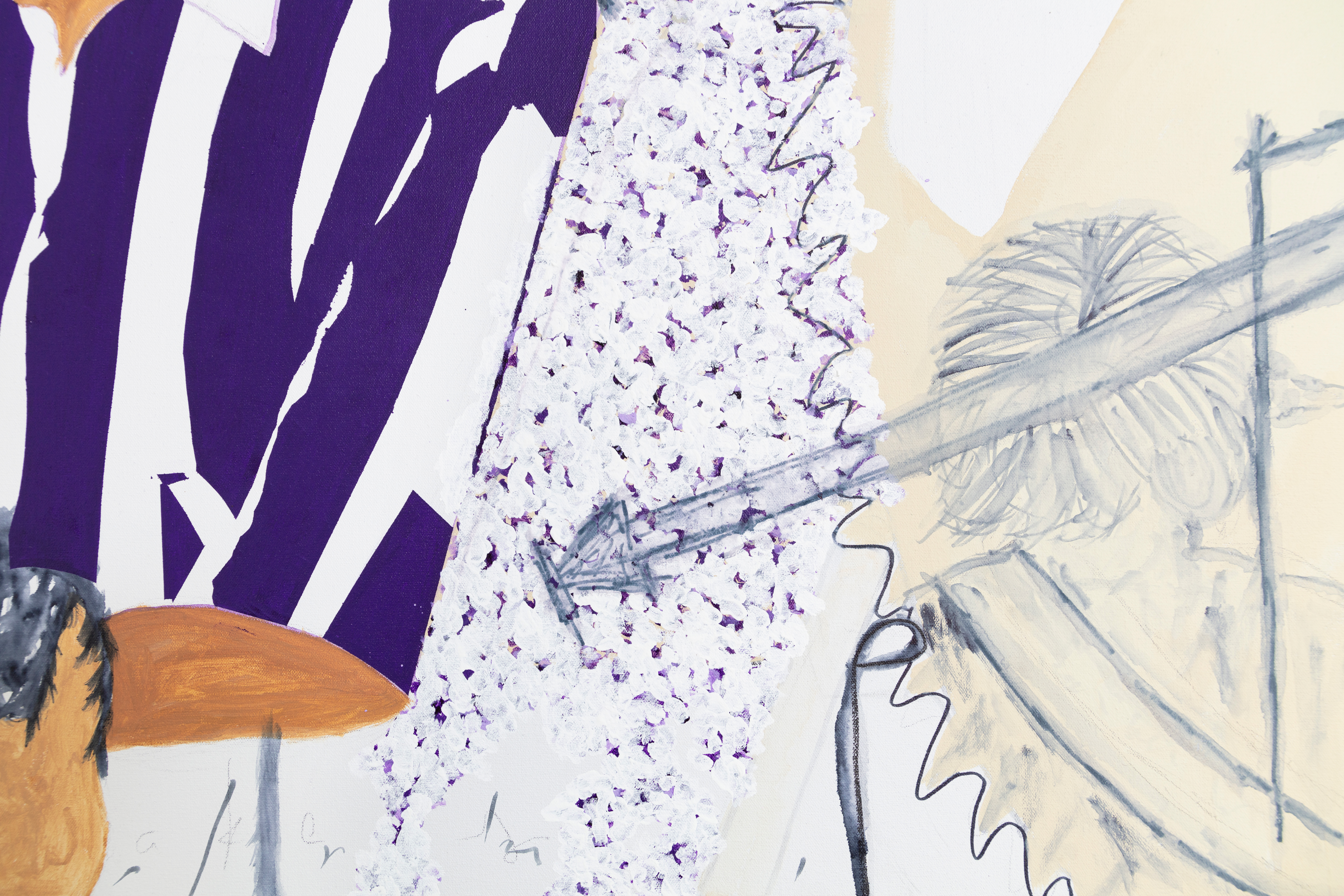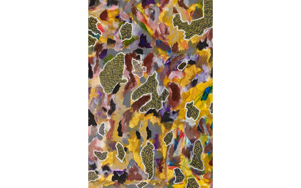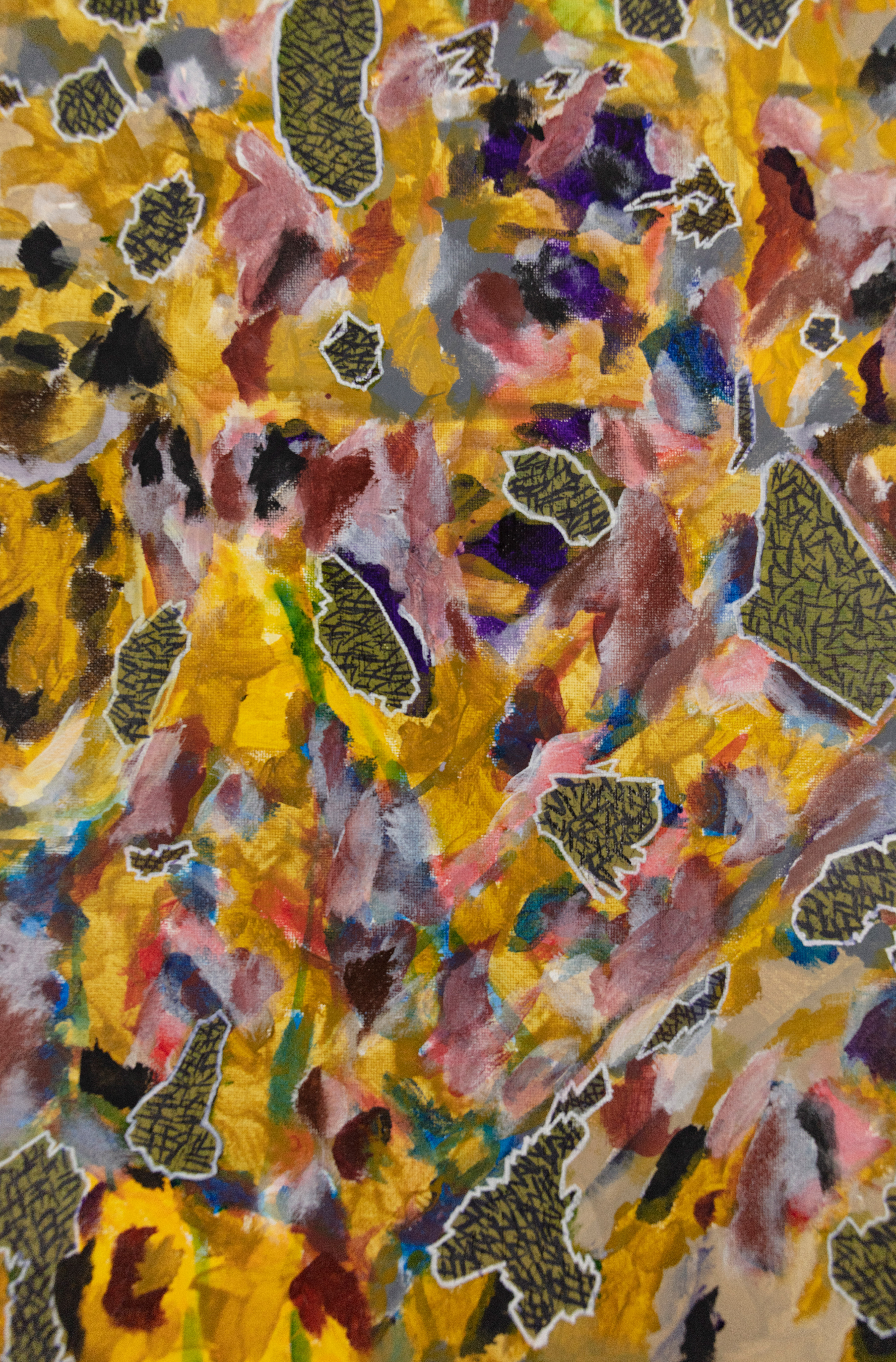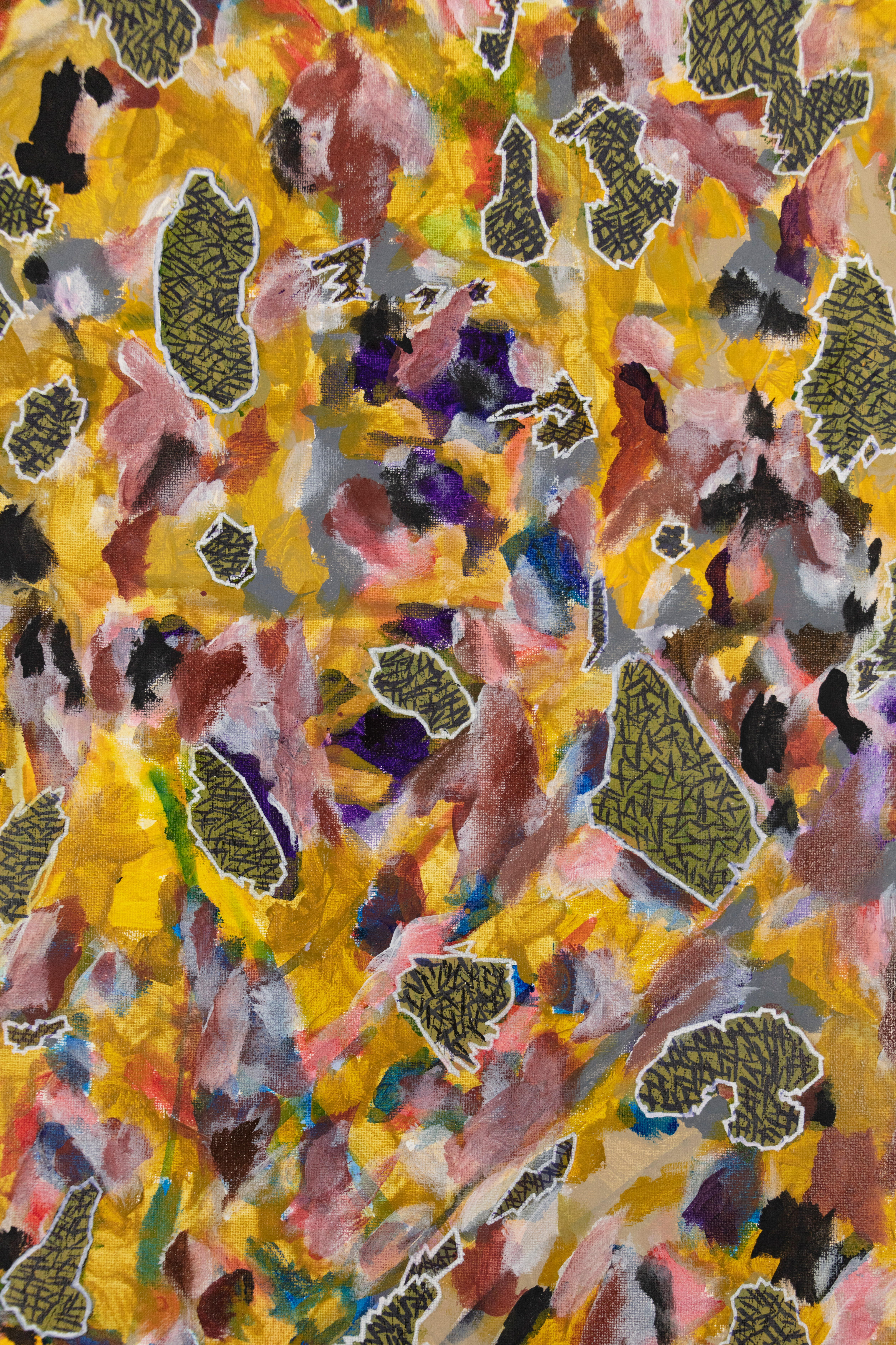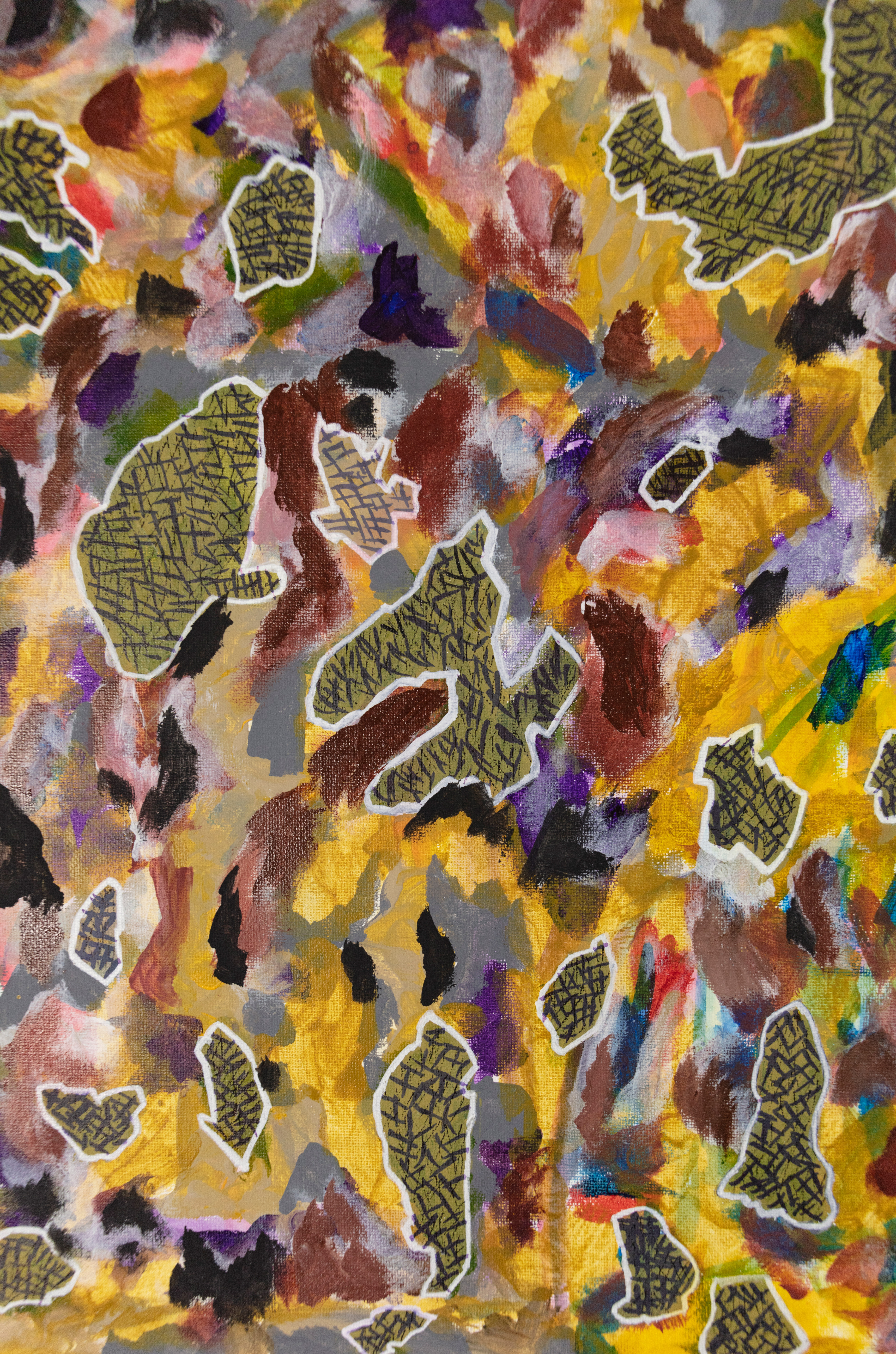 Acrylic, marker, graphite, collage, vinyl on canvas