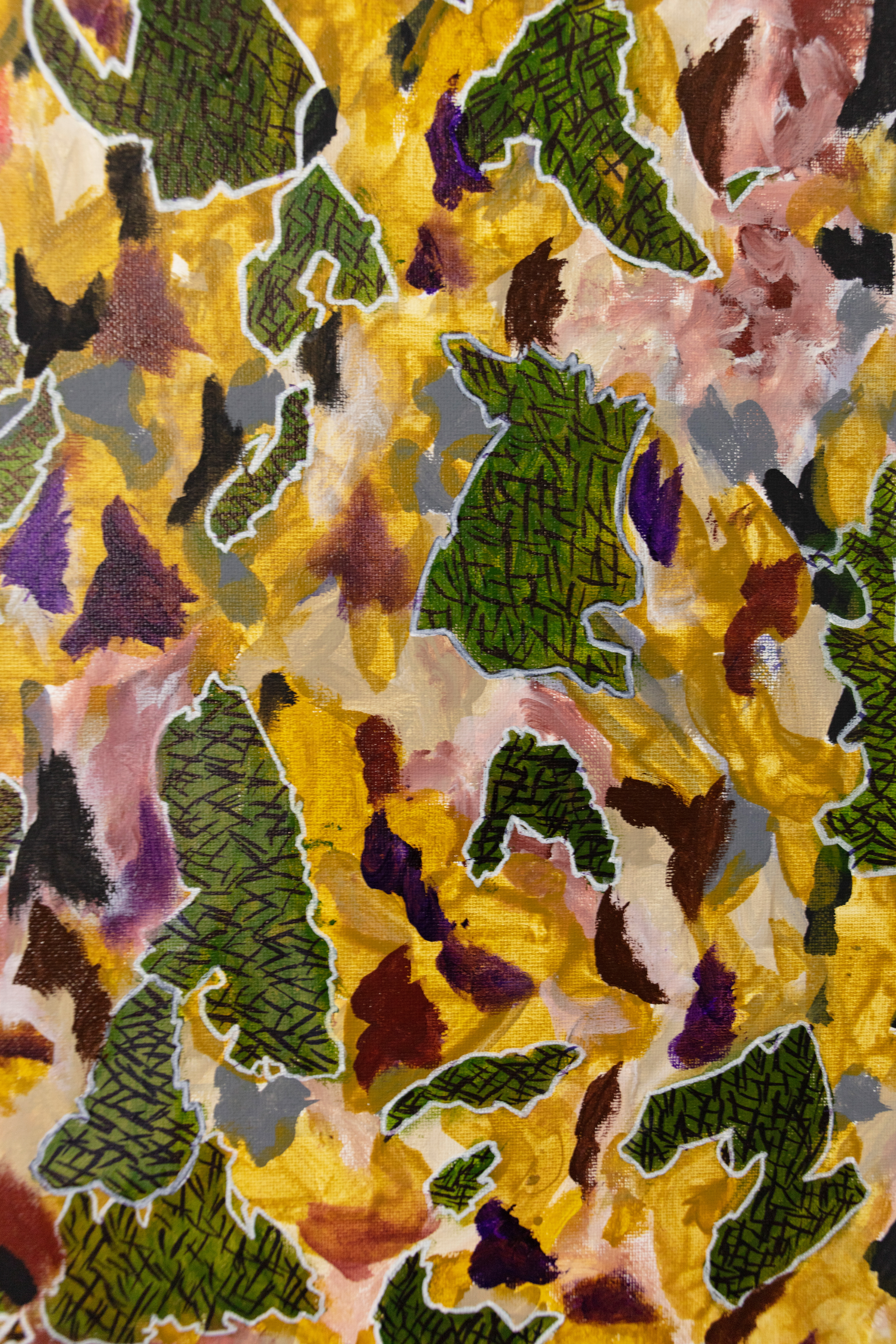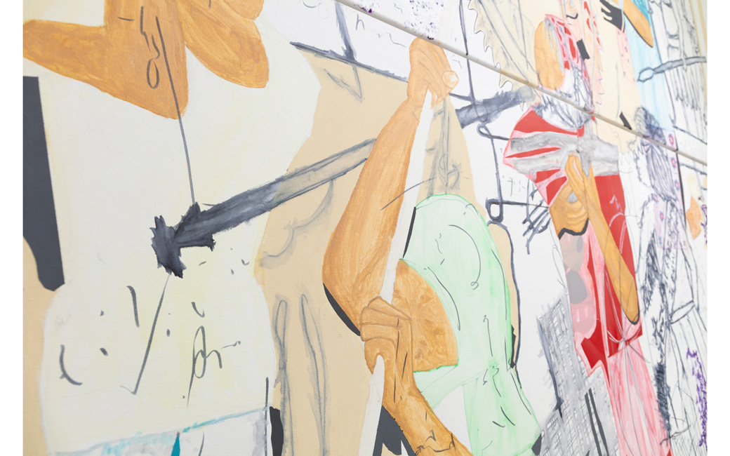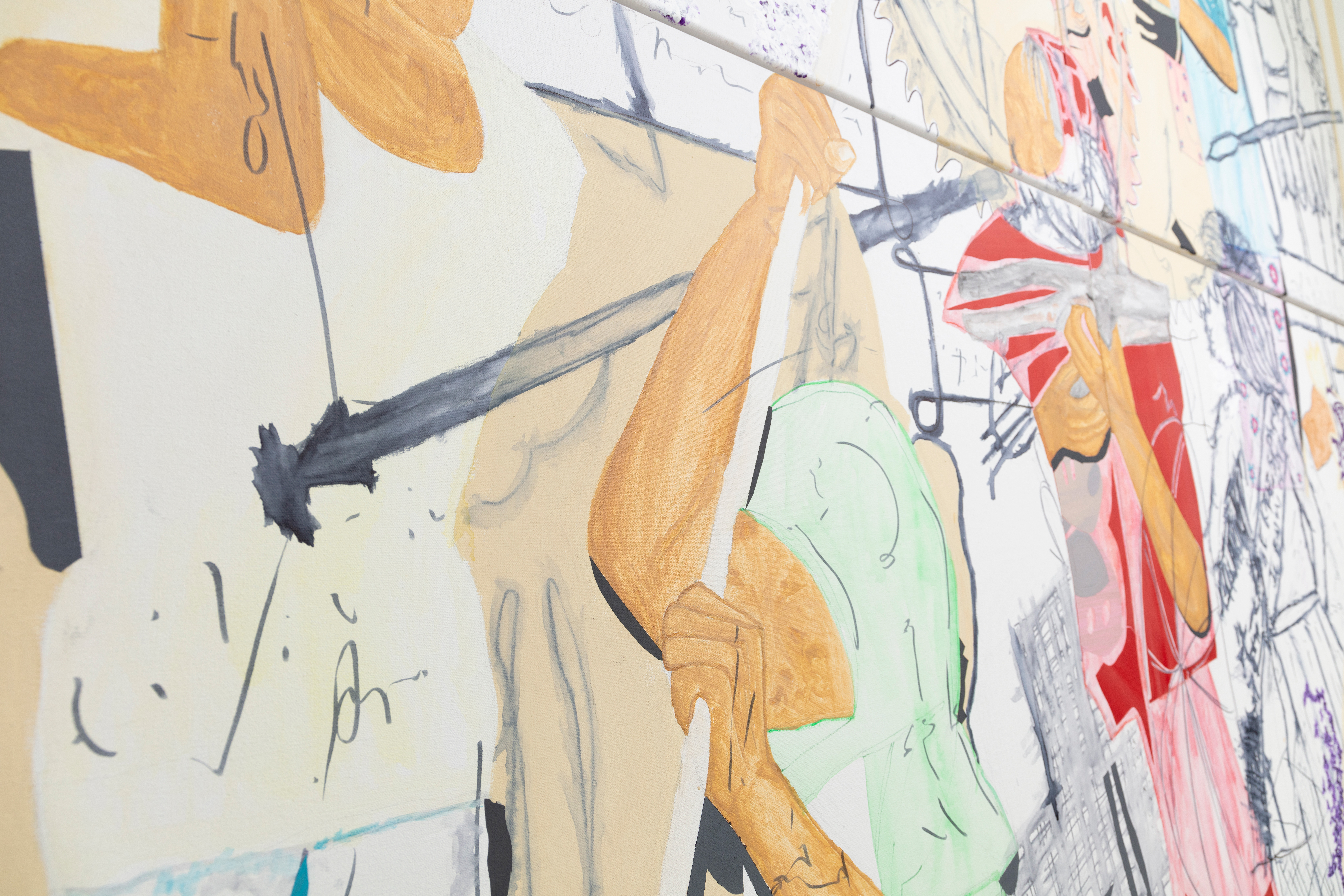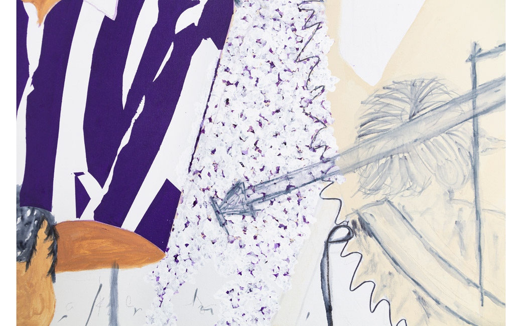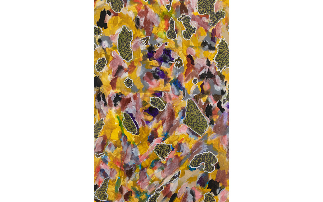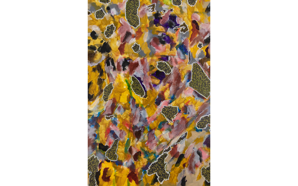 Acrylic, marker, graphite, collage, vinyl on canvas