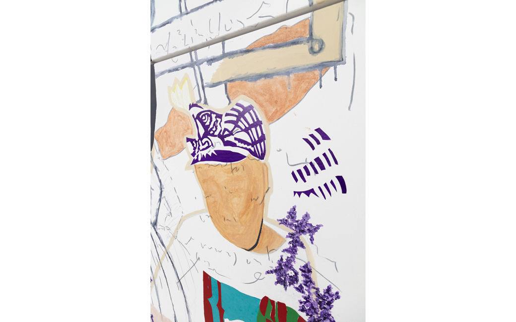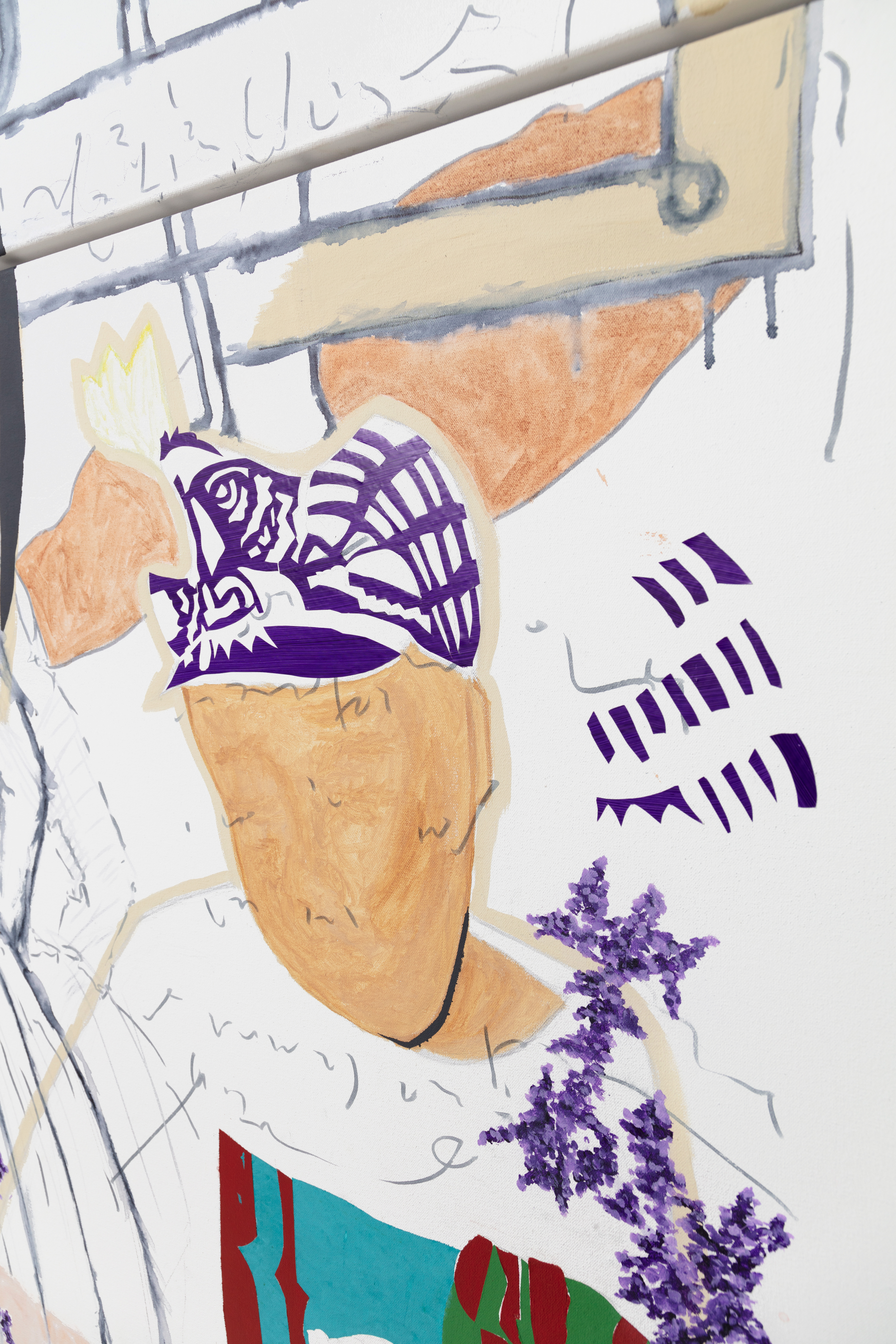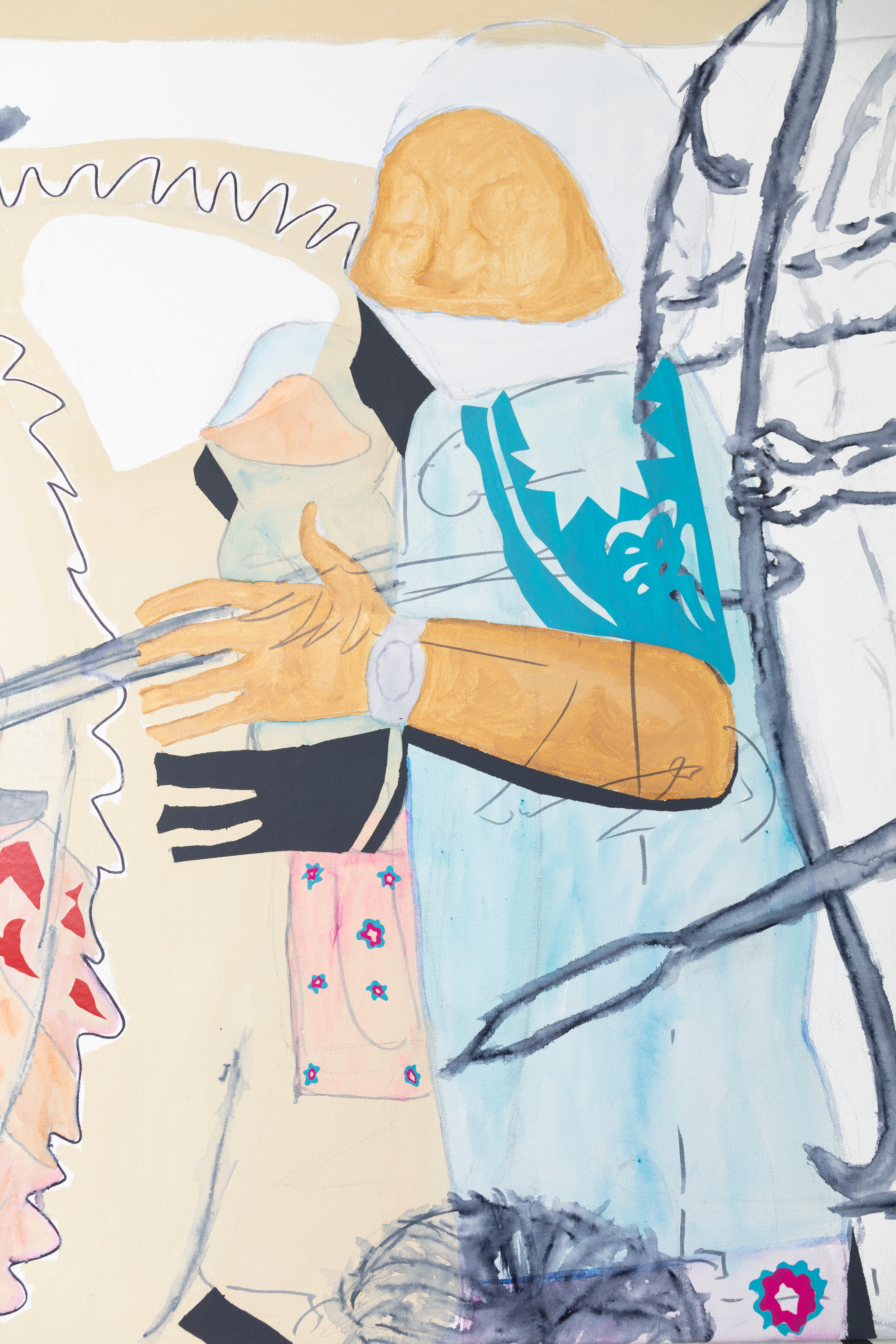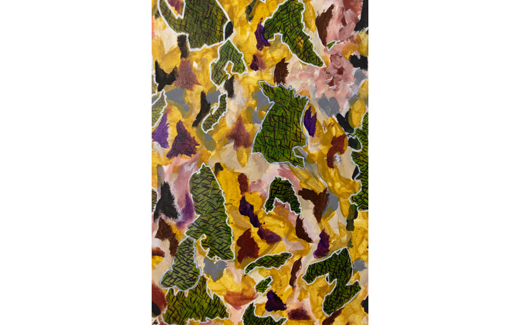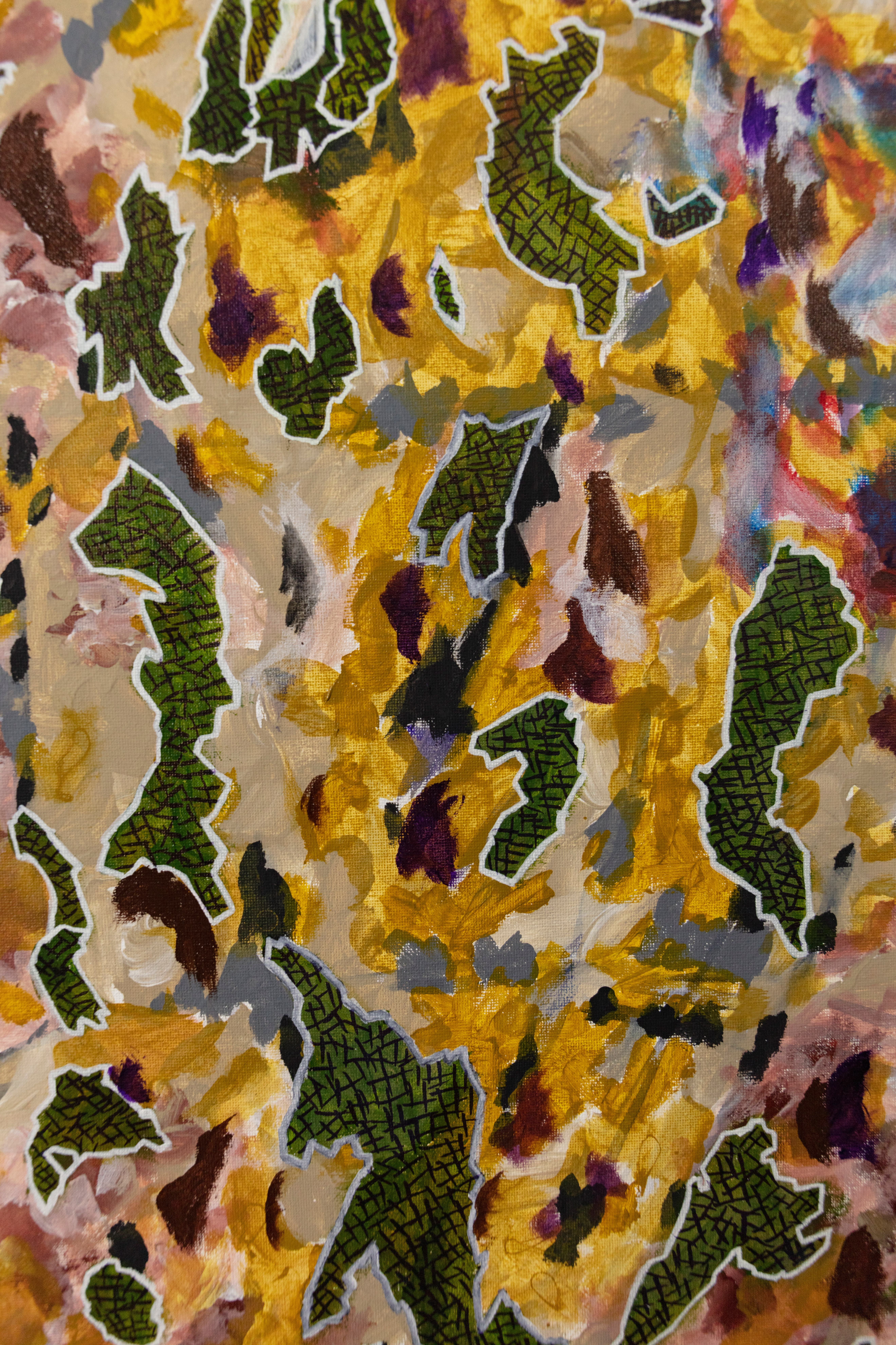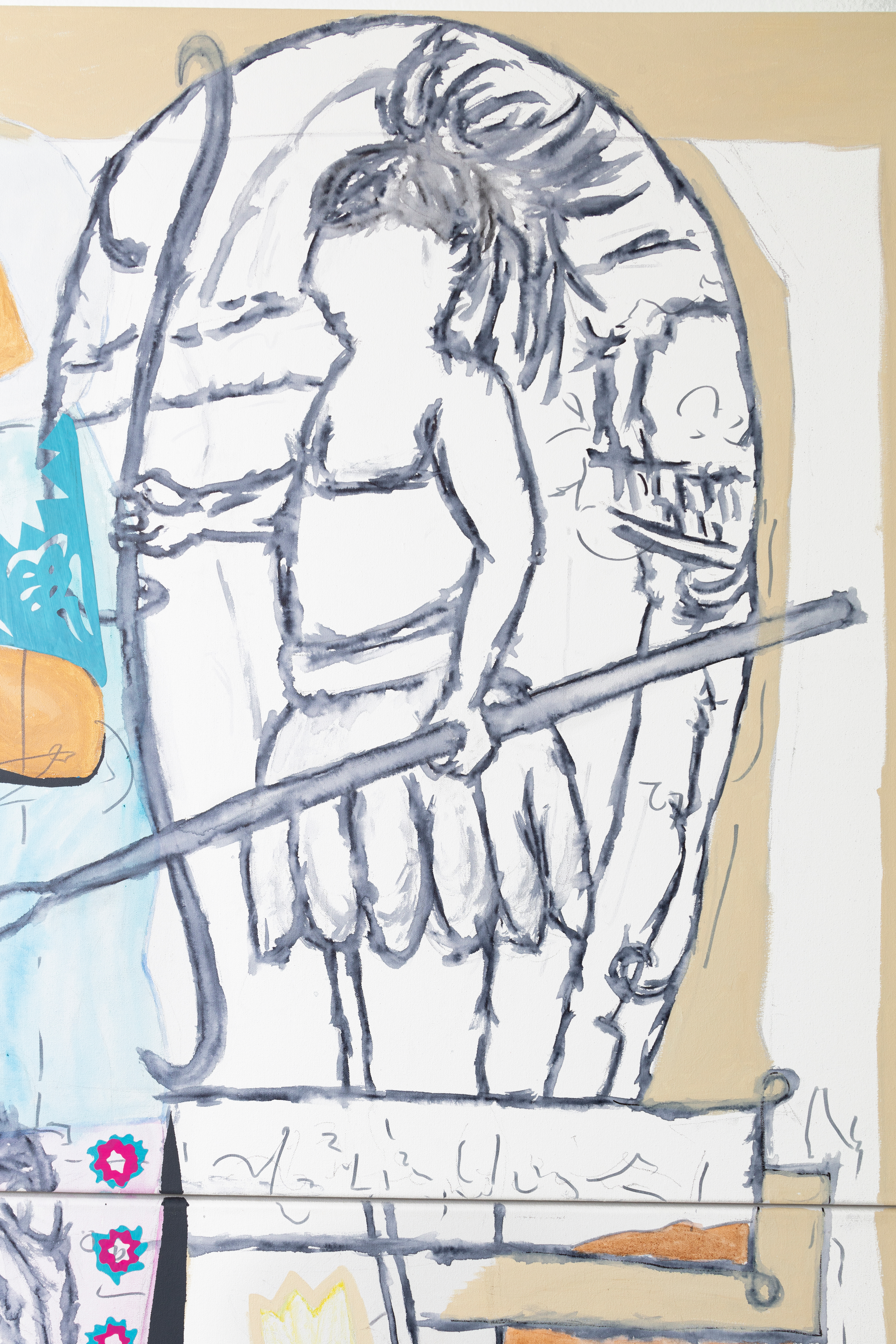 Acrylic, marker, graphite, collage, vinyl on canvas