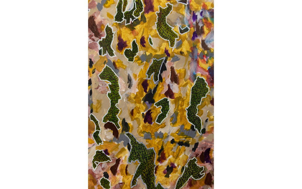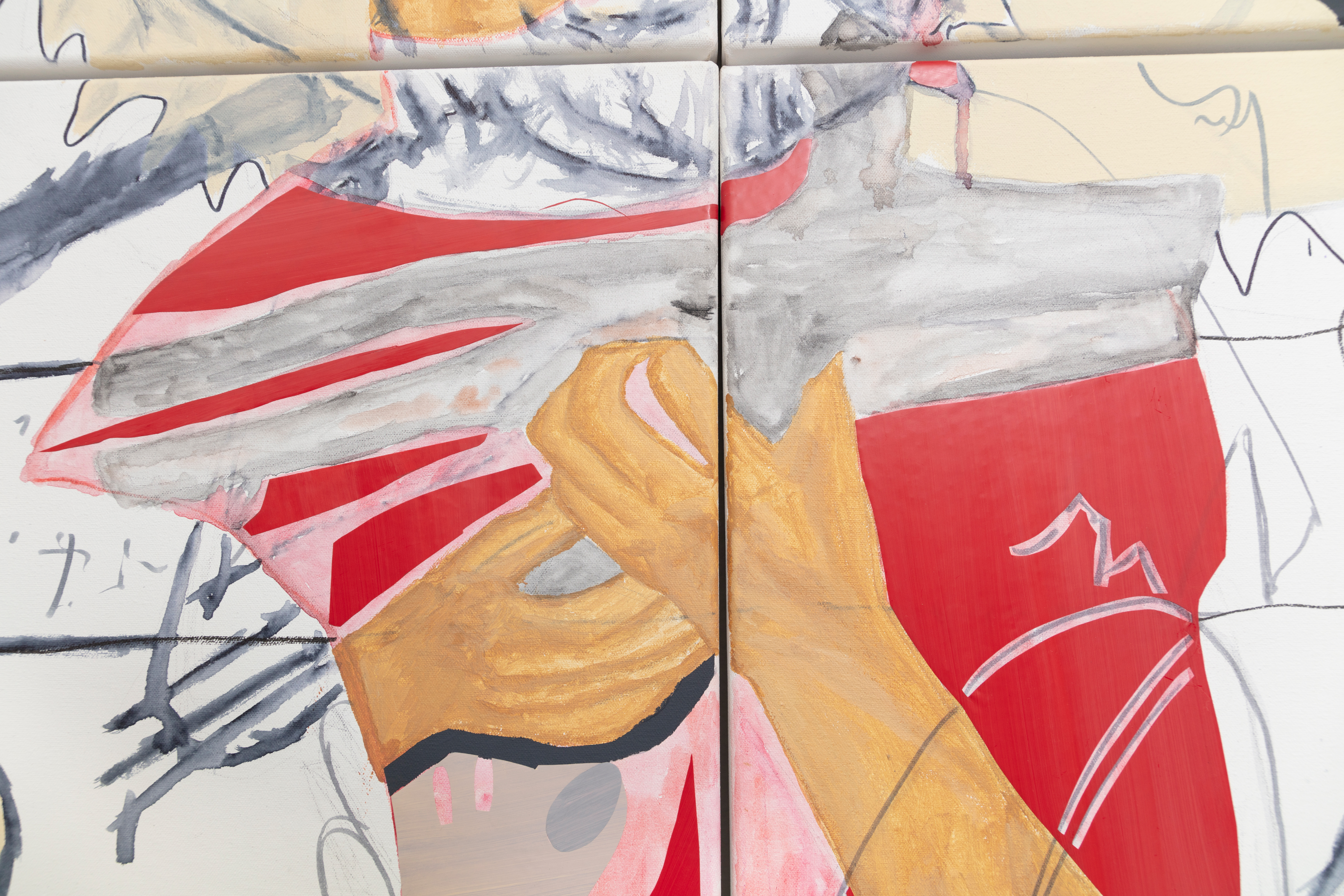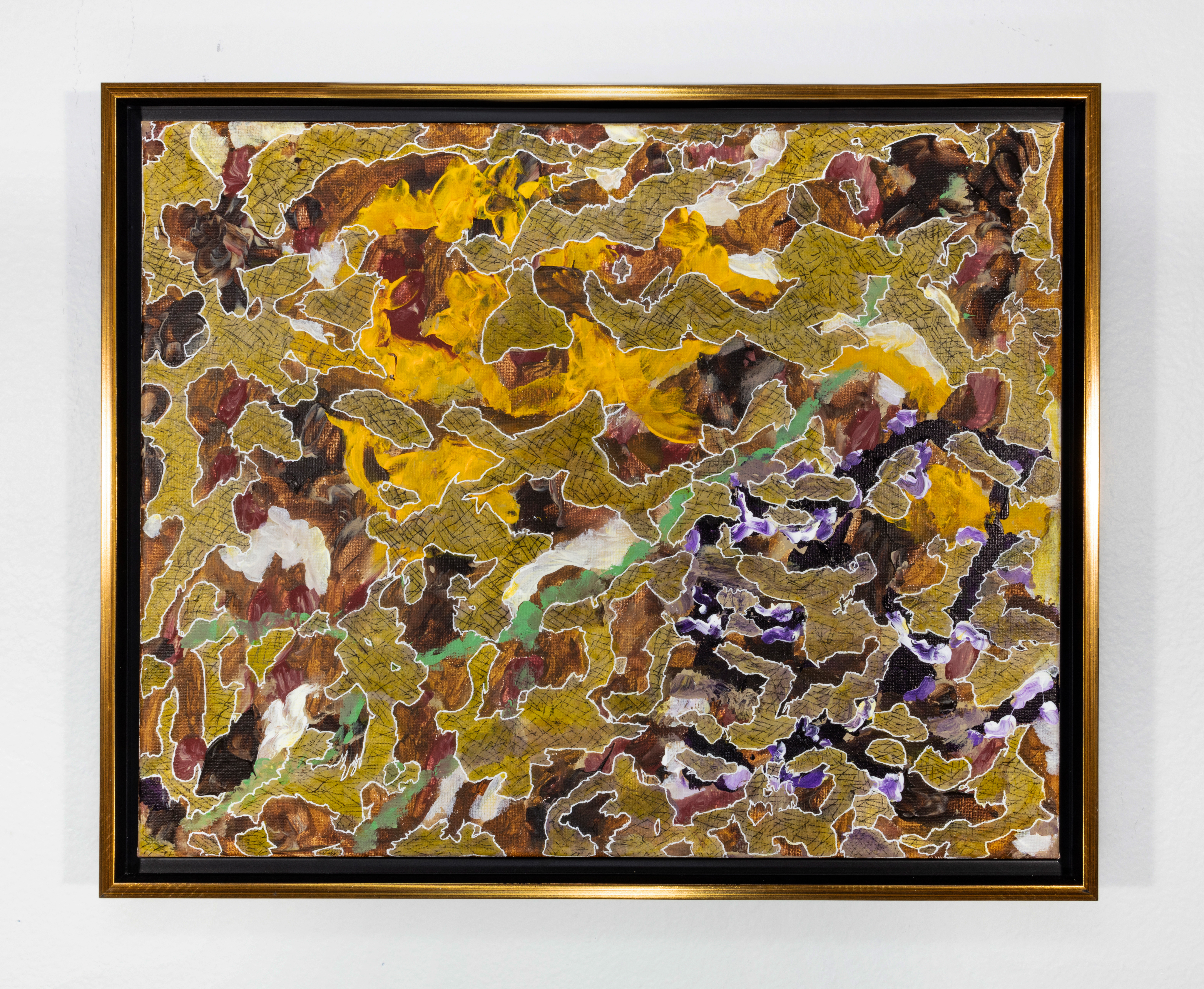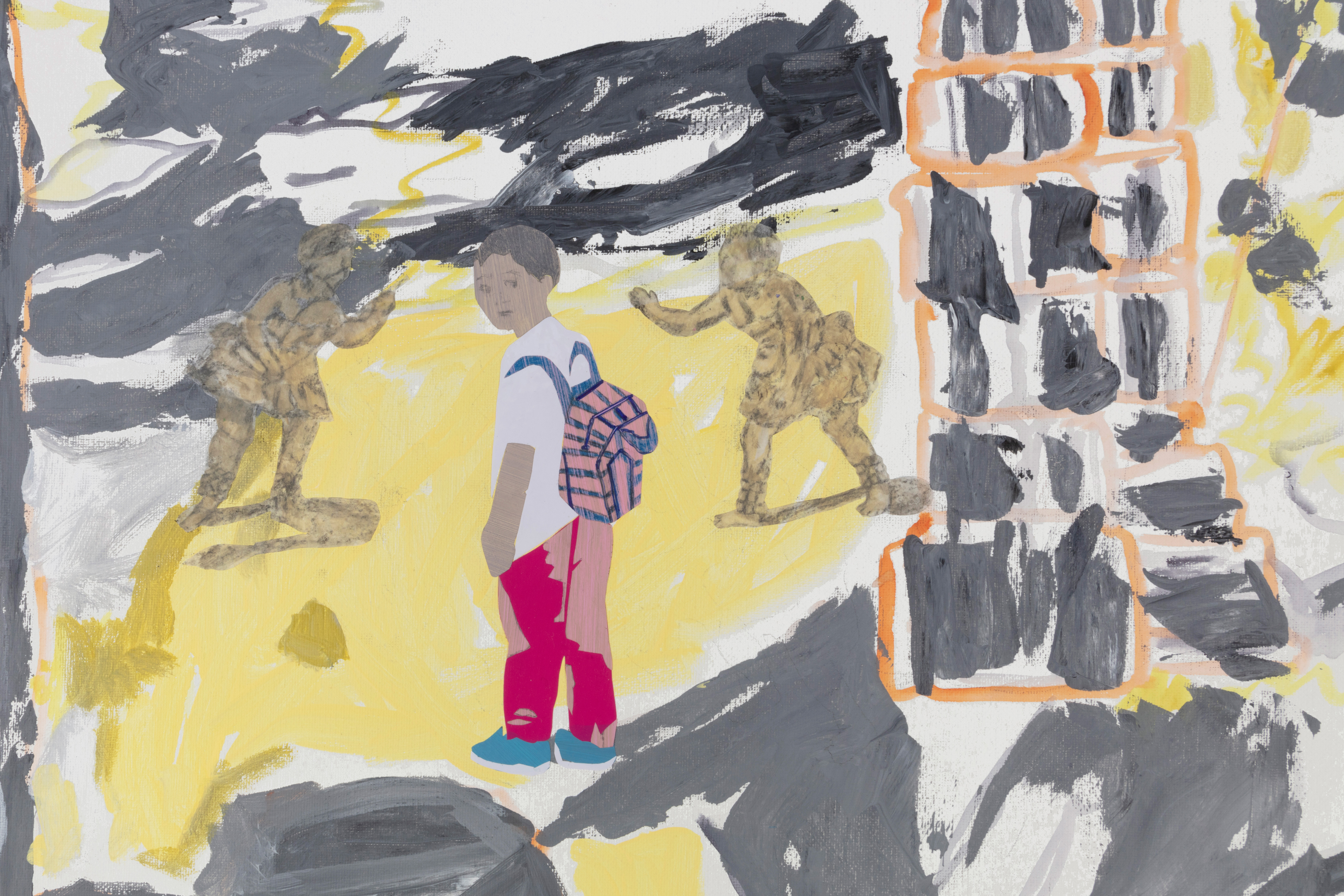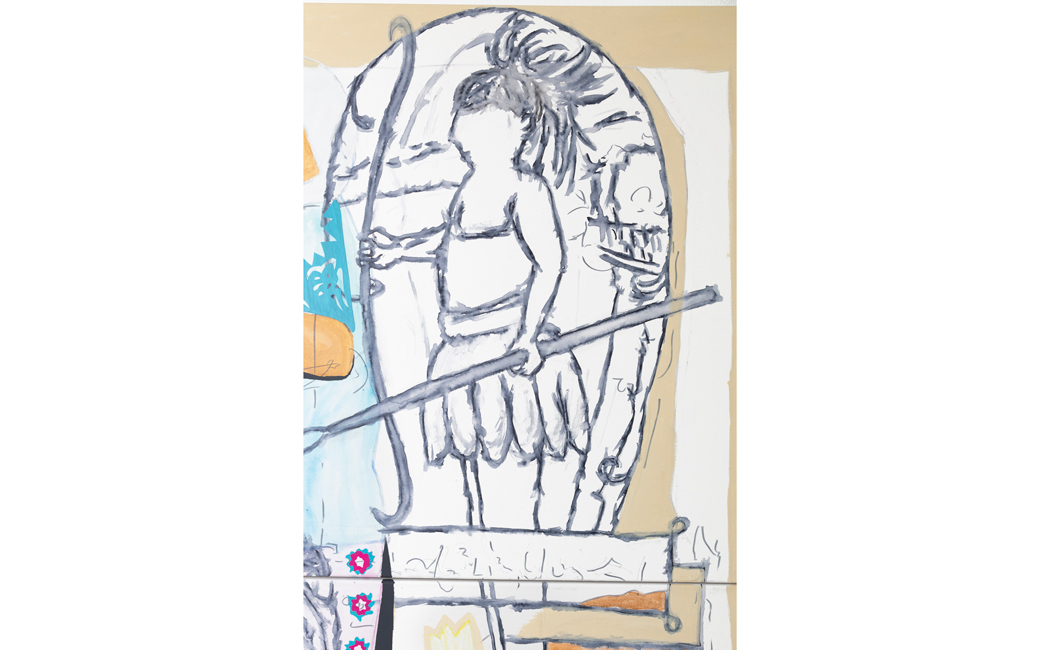 Acrylic, marker, graphite, collage, vinyl on canvas