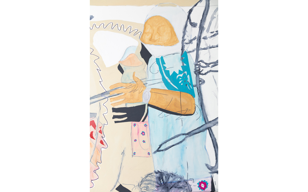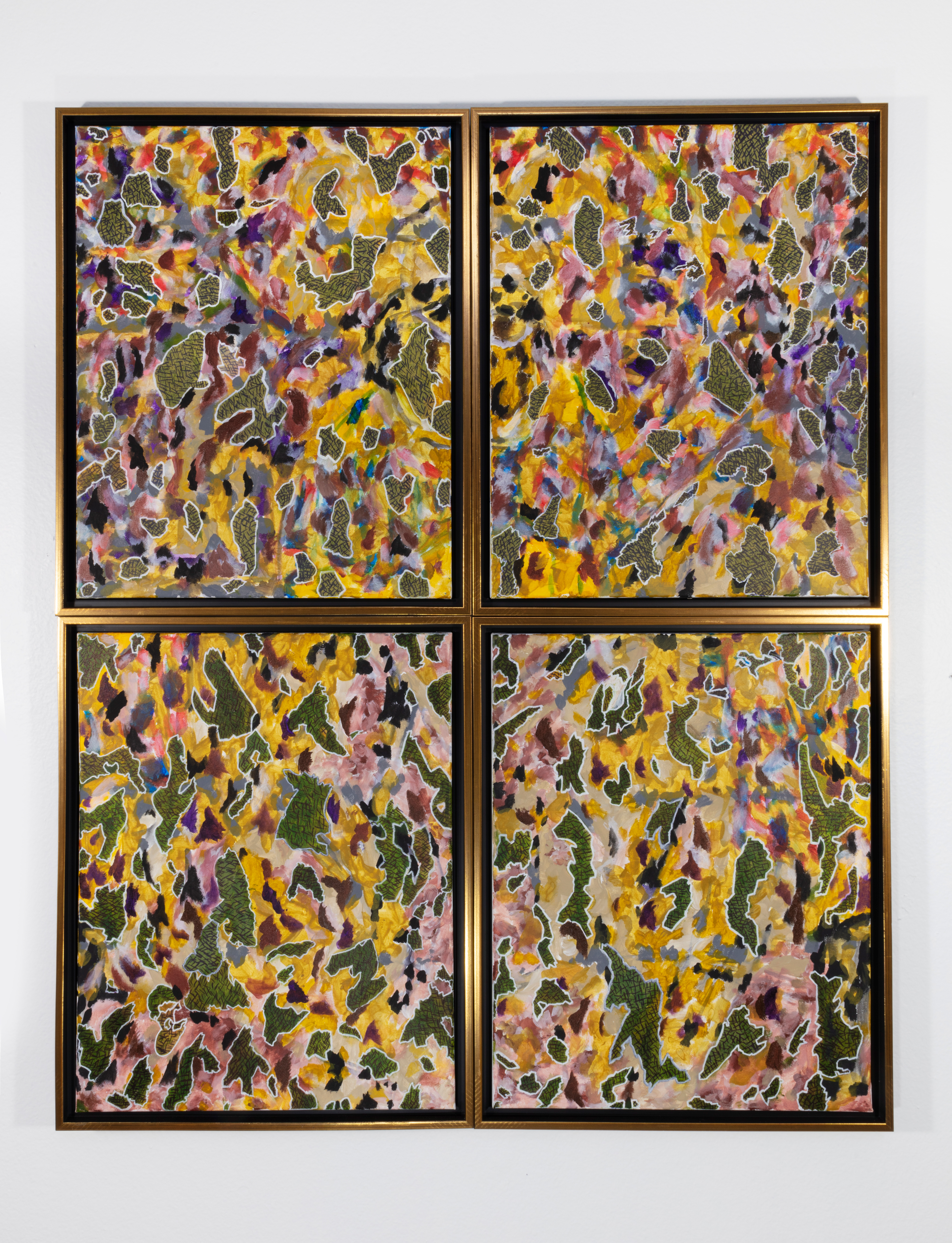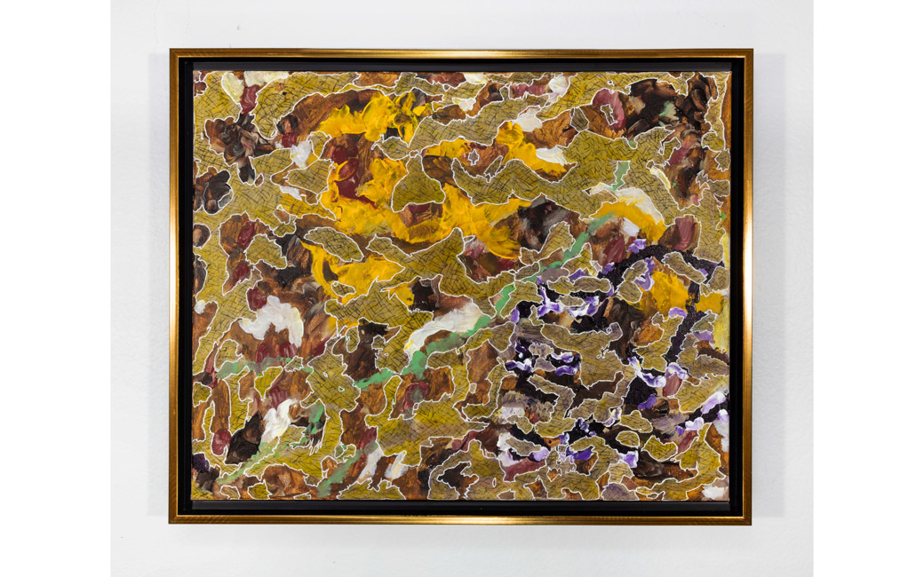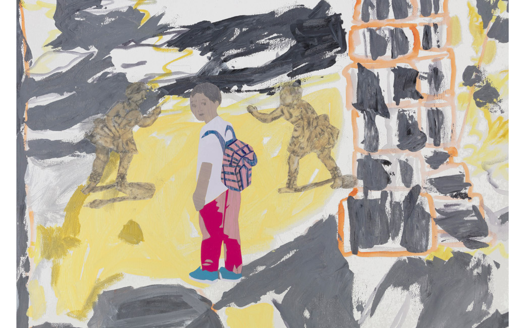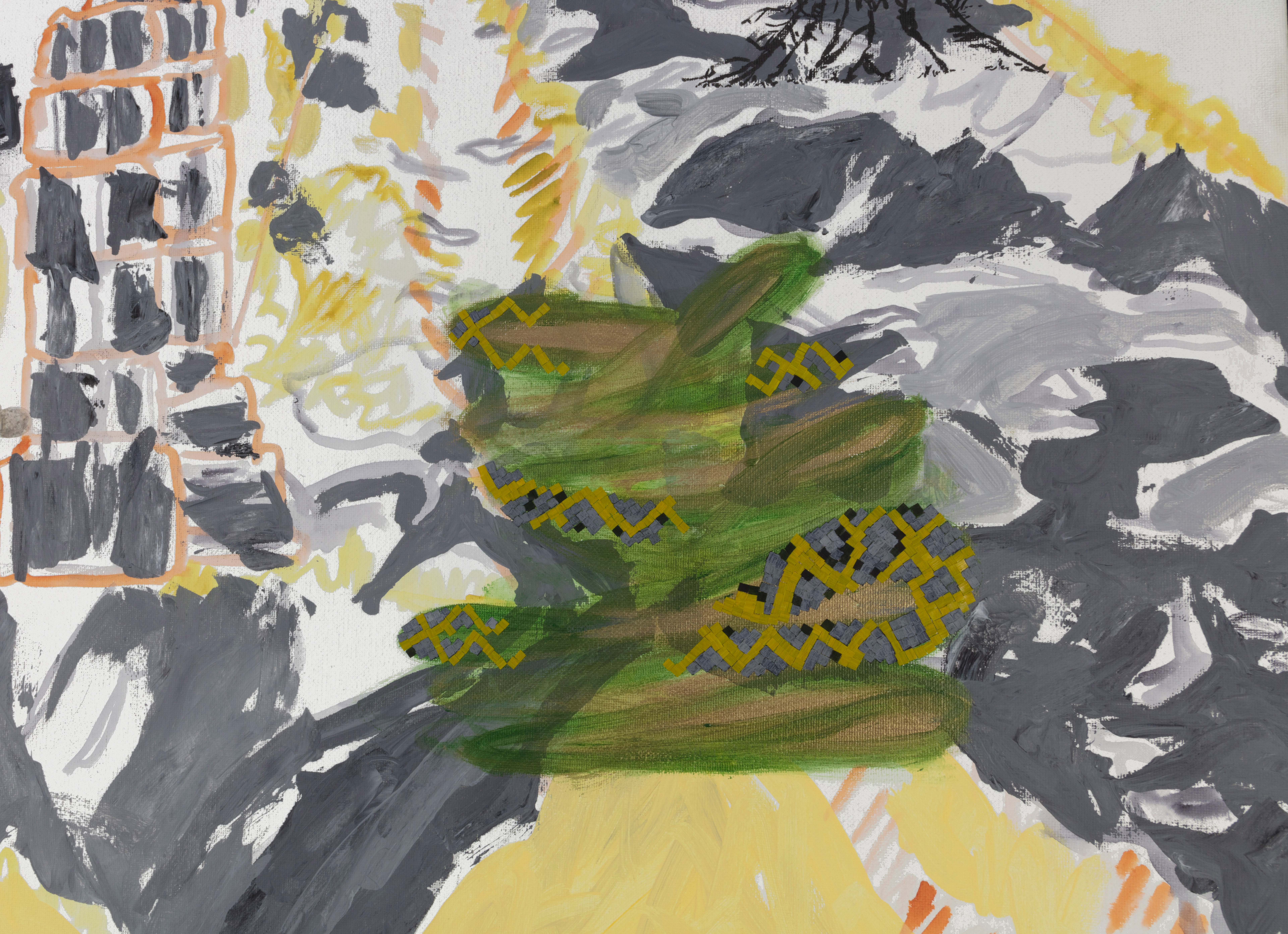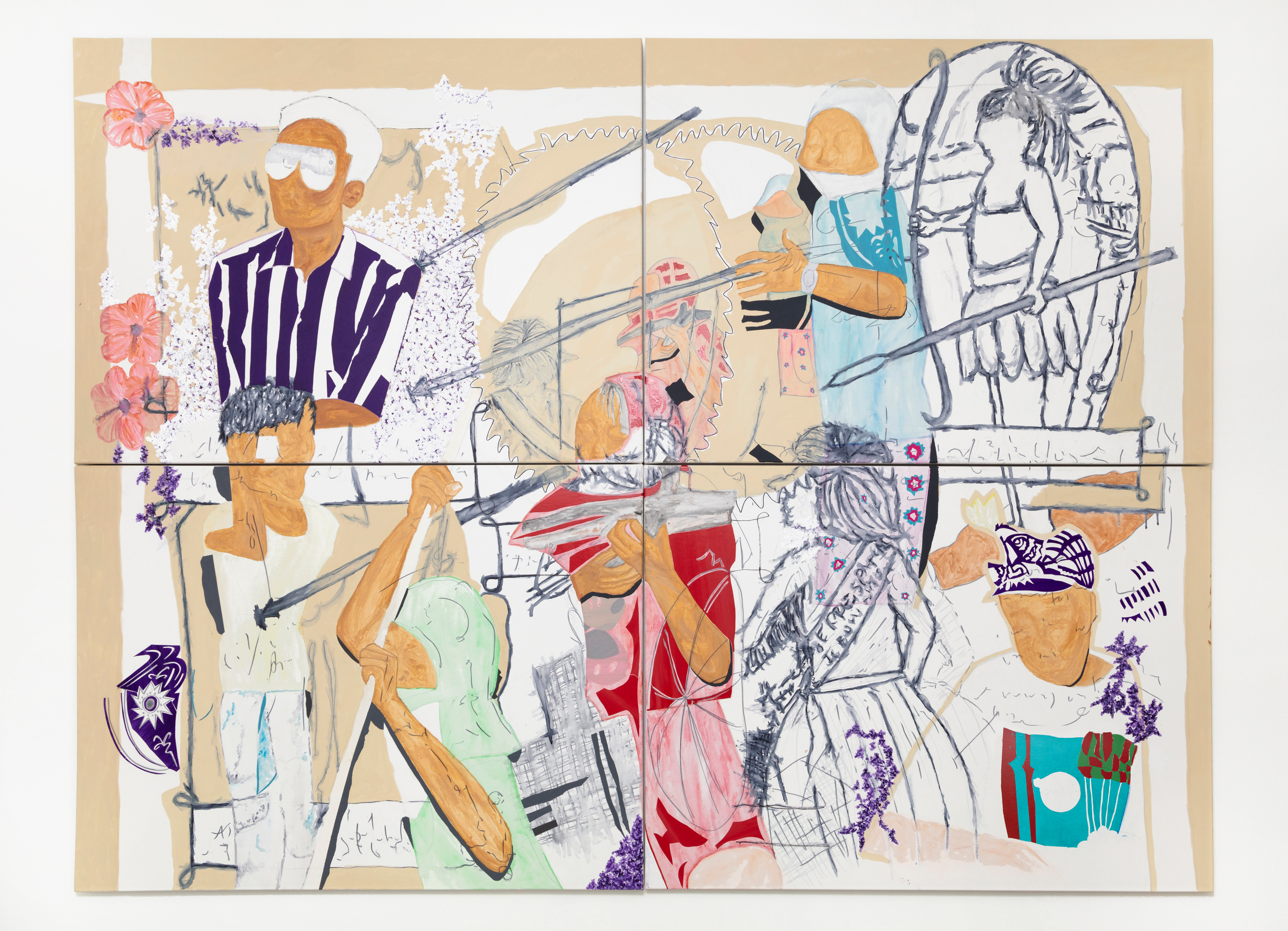 Acrylic, marker, graphite, collage, vinyl on canvas