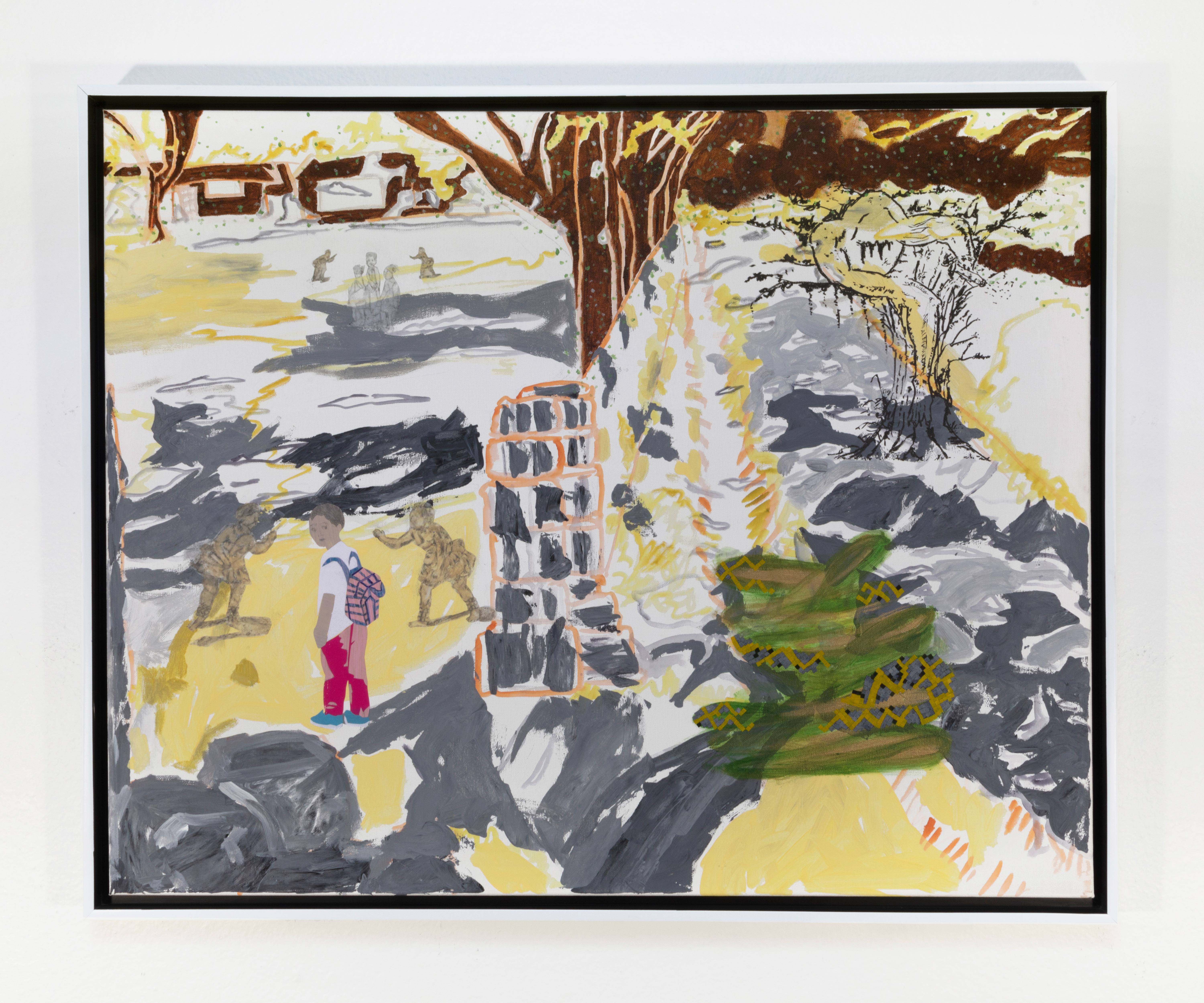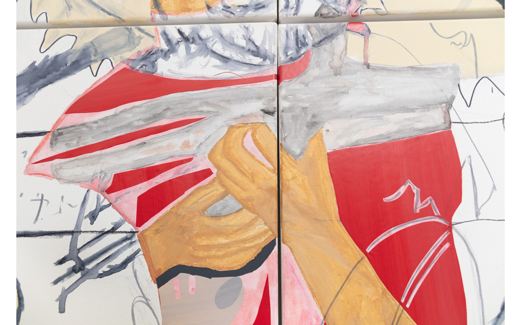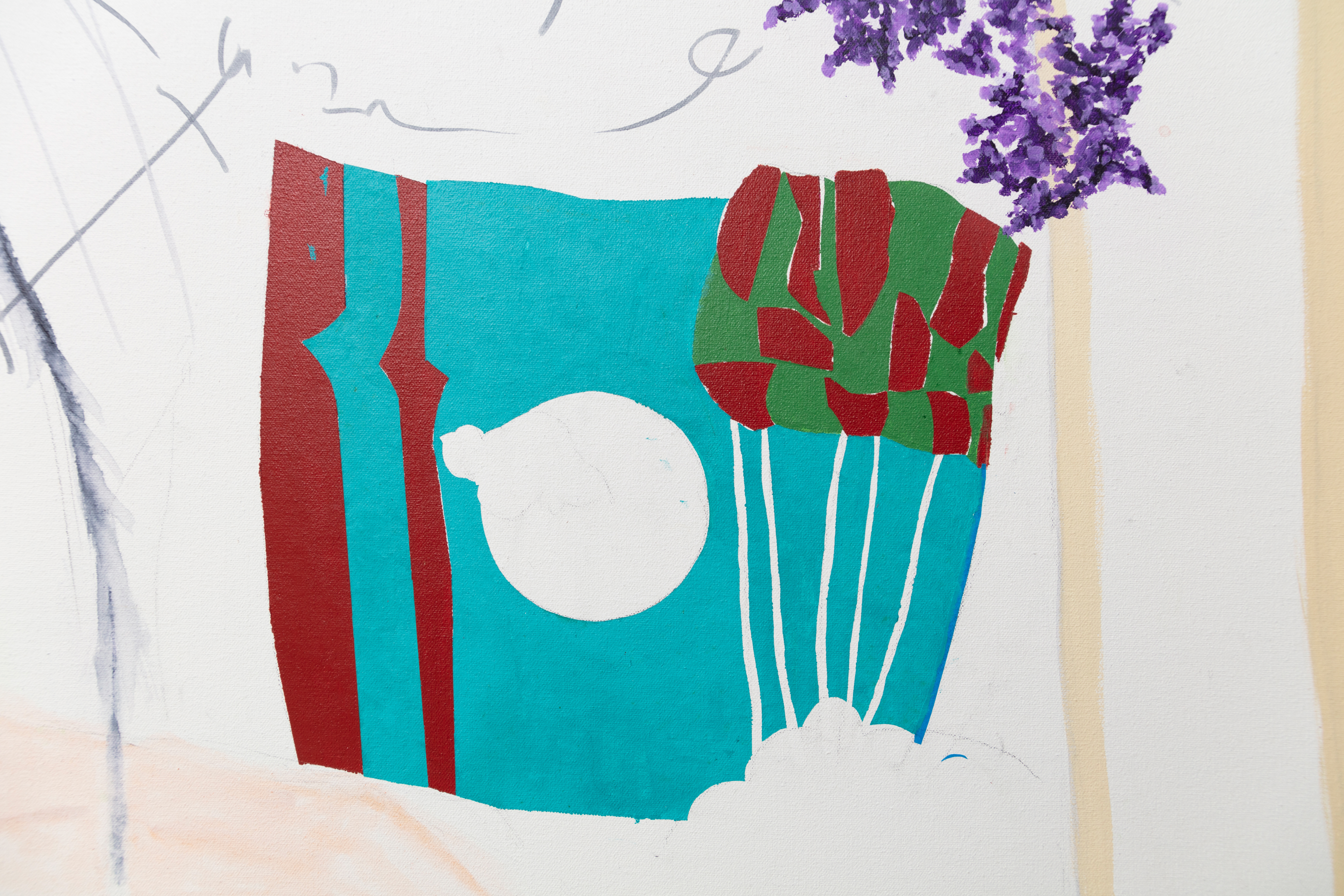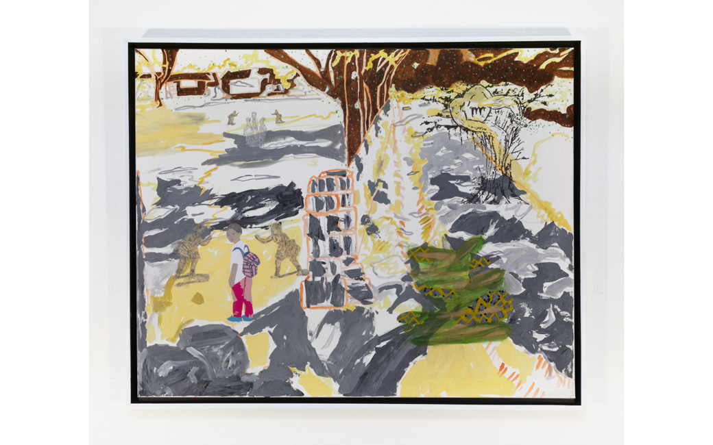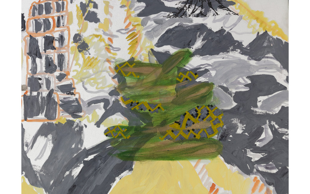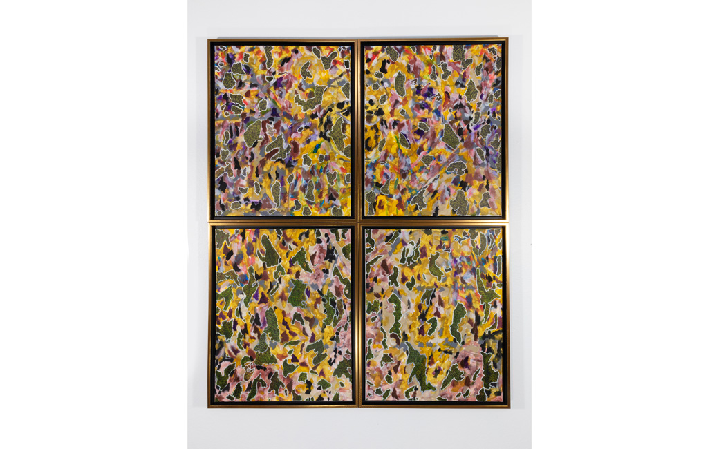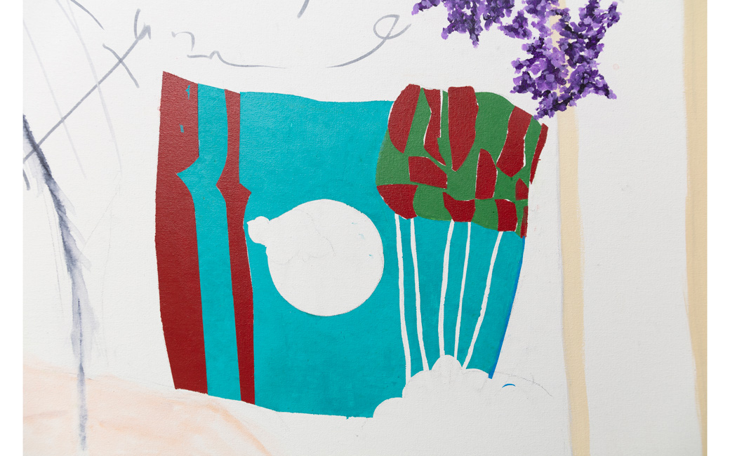 Acrylic, marker, graphite, collage, vinyl on canvas