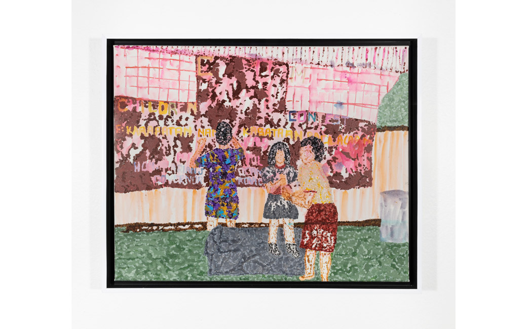 In this painting, I reproduced racist illustrations of Filipinos as savages, published in American papers like the Boston Globe (after the Spanish American War). In this work are also images of my cousins and I assuming the characters of the Teenage Mutant Ninja Turtles — an American cartoon show that was broadcast all the way to our baryo — seeing the reaches of the U.S. and the persistence of imperialism, in the lives of different generations of Filipinos.