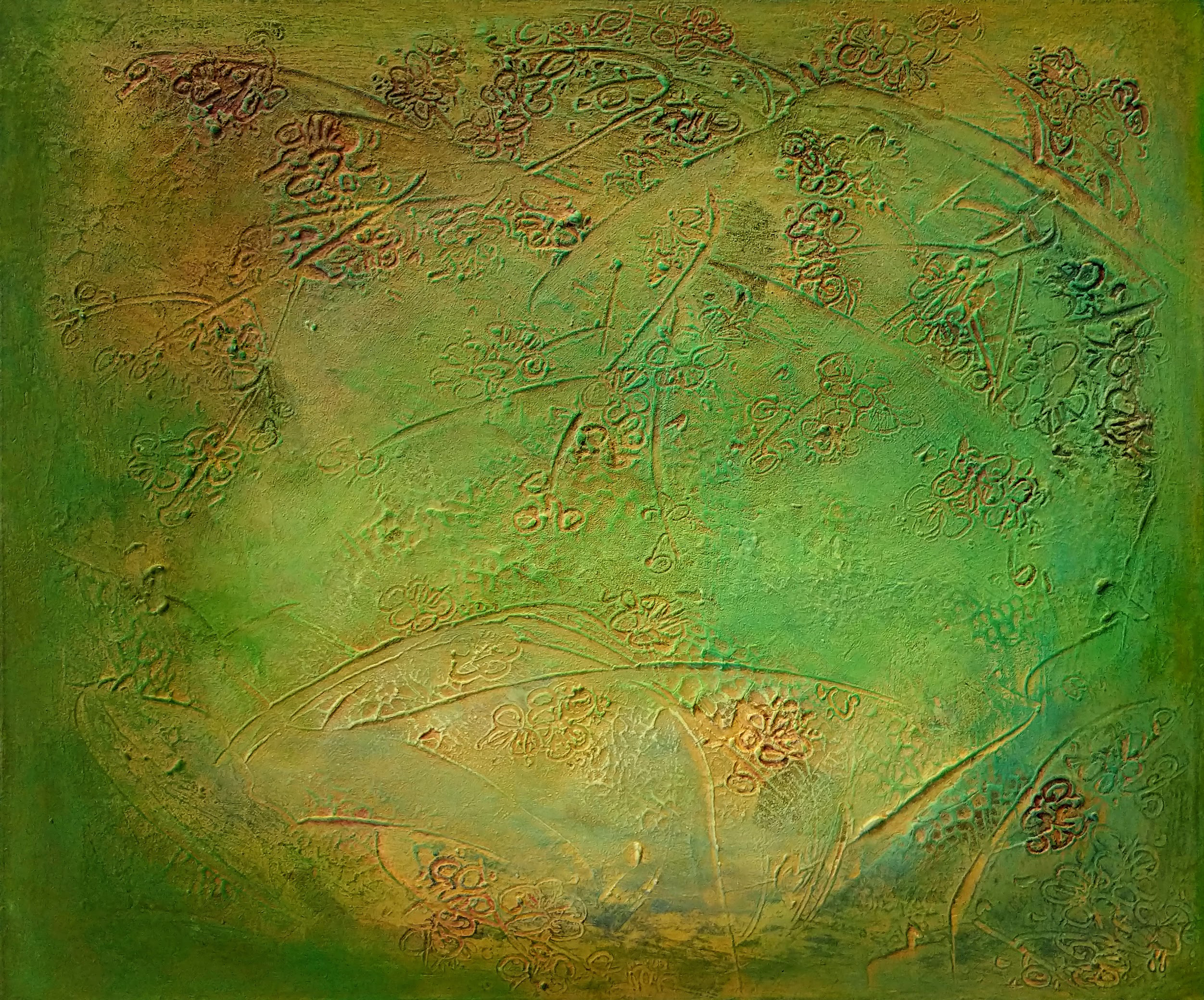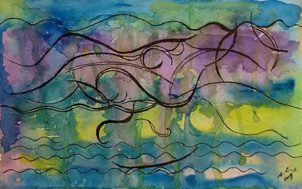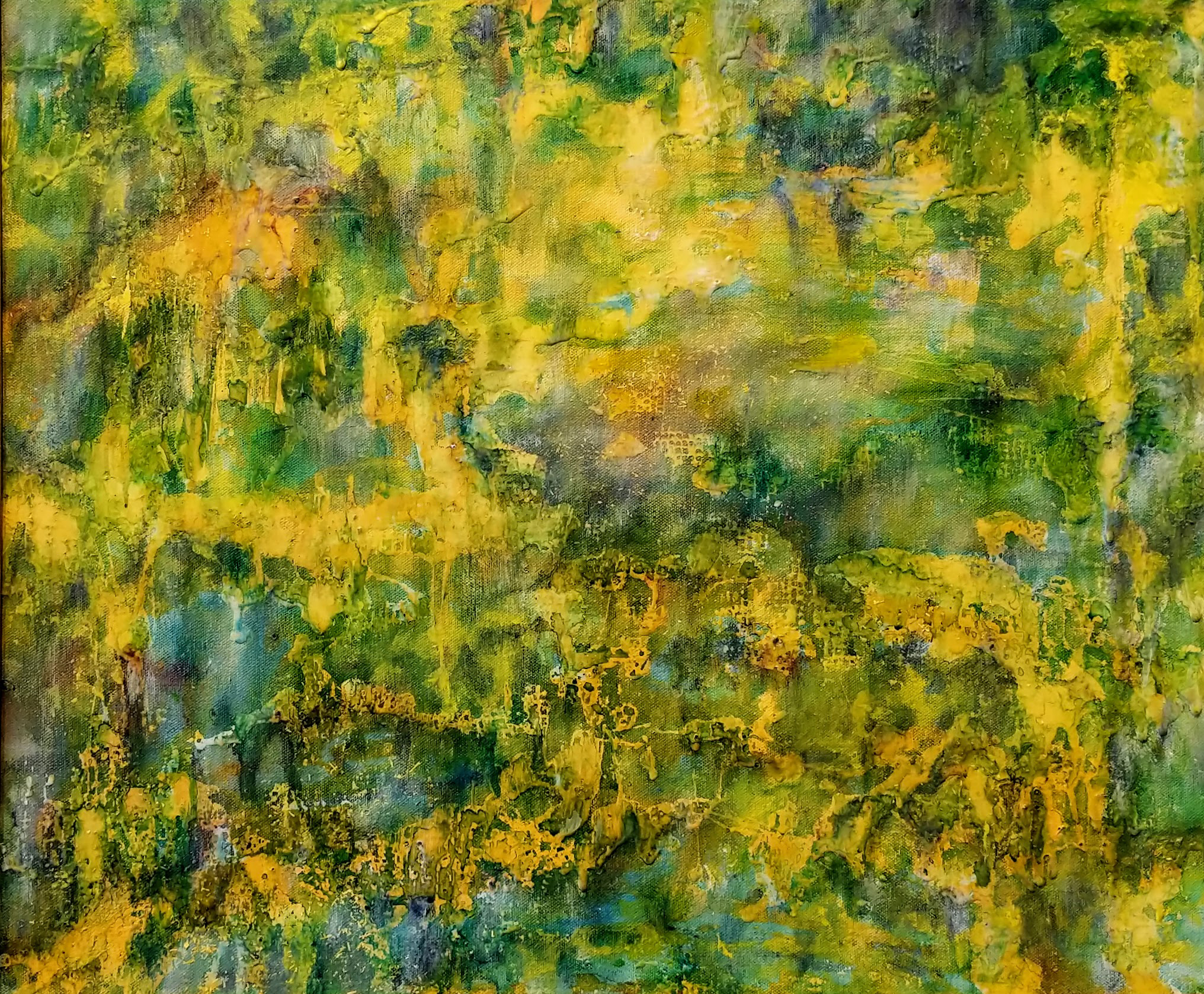 A few years ago, I had immigration with my family, keeping in mind the curiosity, excitement, and fear of the uncertain future of the new country. During the flight to America, I looked down a beautiful landscape which induced unbearable mixed feelings and thoughts. To this painting, I recalled the idea at that moment, and expressed my emotions and experience using mixed media on canvas. Resin and yellow, with Acrylic Paint, reflect my hope and optimism during the flight. Other colors, with oil paints, in the painting illustrate my unstable emotions.