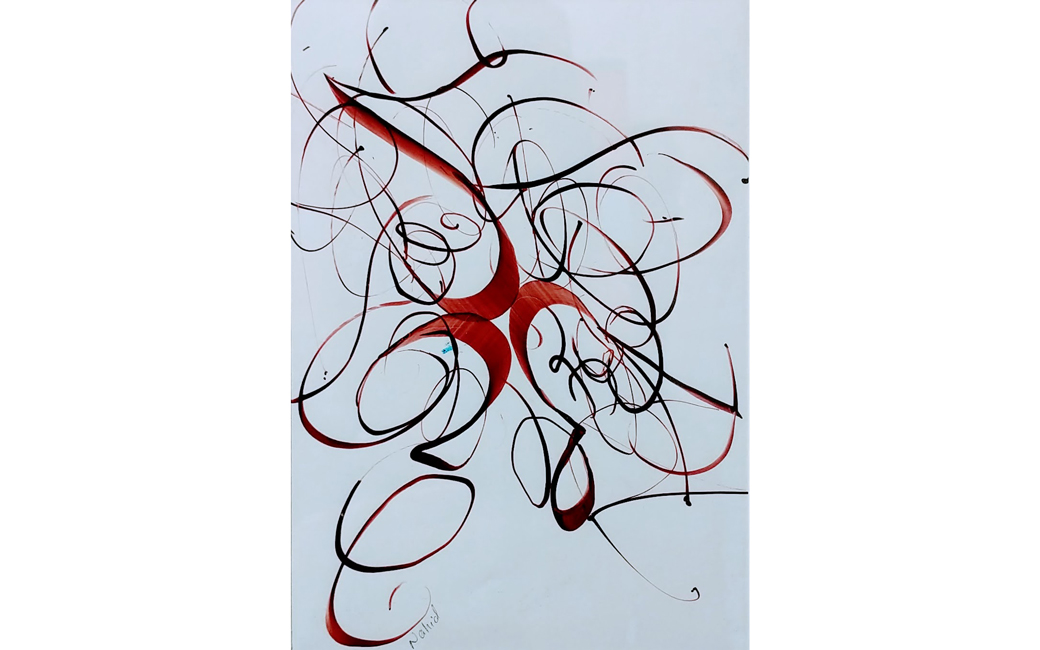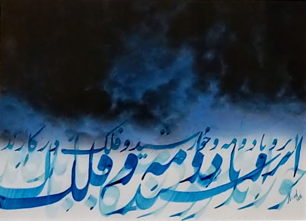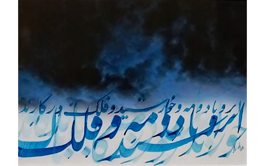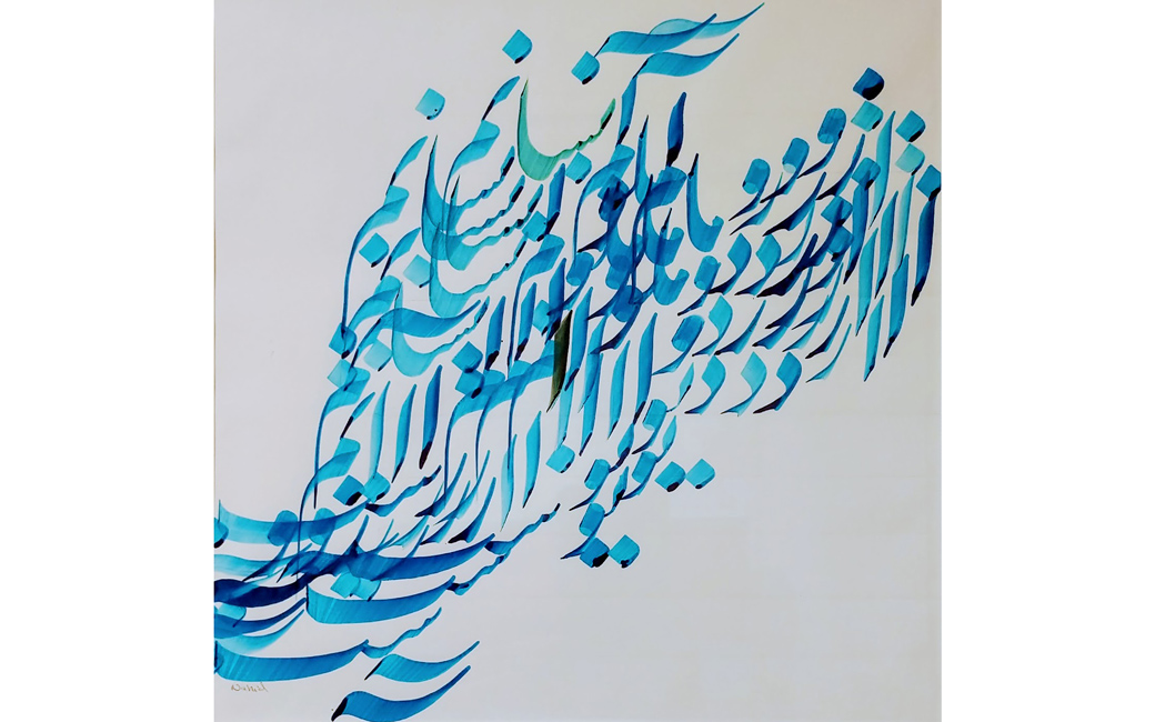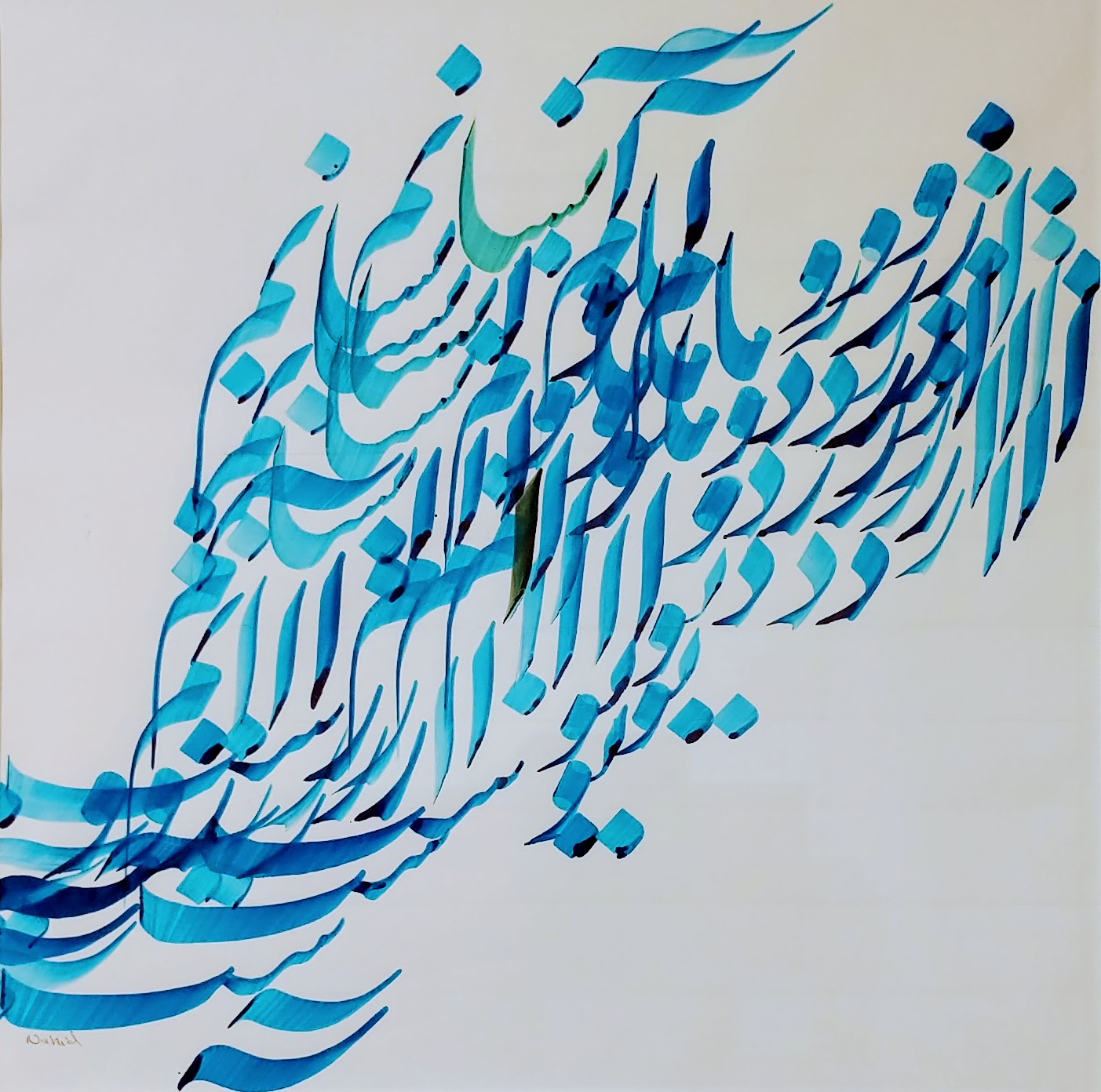 I have always been fascinated by the magical effect of pen and ink on paper. As a graphic designer encountering the replacement of traditional tools with digital technology, I find a meditative state in calligraphy. During the past five years I have immersed myself in learning Persian calligraphy and studying Chinese, Devanagari and Hebrew calligraphy. I have been researching the history of calligraphy and its importance in cultural identity. In addition, I studied many master calligrapher’s art works, tools and their intention behind their art. I have practiced and witness how harmony in life is achieved by practicing this art. Above all, I have noticed how we all use the letterform as an abstract form to express our individual value of beauty and aesthetic in evoking emotion. We all come to meet at one point; to express our unique cultural identity. It is in this natural form I find an infinite wisdom in gravitating toward a basic way of living.