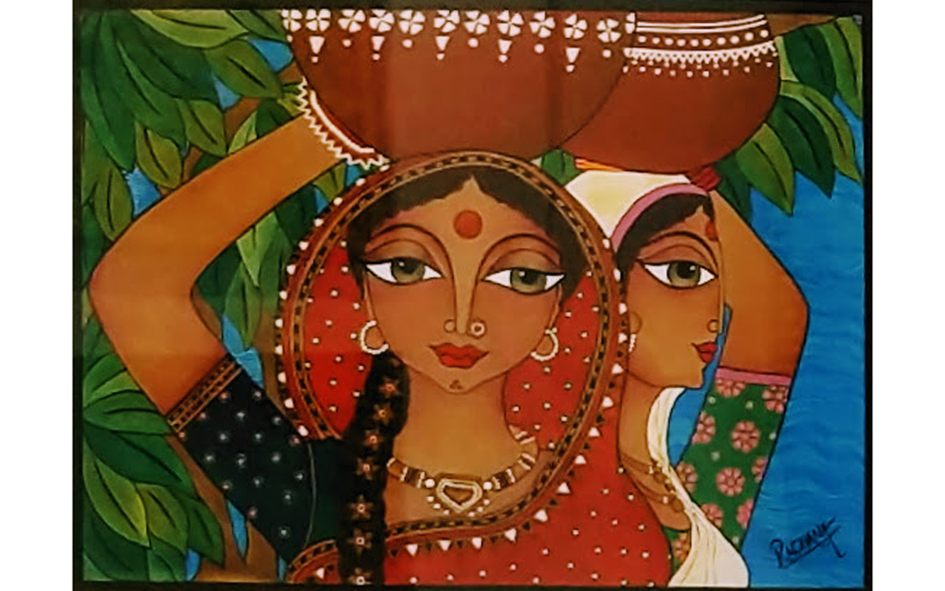 Rachana Saurabh is a Self-taught artist, jewelry designer, art teacher, wife, mother and engineer by education. She portrays Indian woman in contemporary style. Her paintings are inspired by gorgeous Indian folk art and traditions with bright and beautiful colors that will represent authenticity of Indian women in culturally rich way. Through her canvases, she expresses the self-expression of the subject, revealing their suppressed emotions and natural beauty in artistic way. Since childhood, she was passionate about painting and won many awards. Her husband’s support, reader’s feedback and positive comments inspired her to take art at new dimension. Her work has been displayed in art galleries in Maryland and Washington DC area. Soon after her discovery to a new medium Polymer clay, she launched her handcrafted jewelry Label “Mitti Designs” in 2012. she is volunteering at community programs, and fund-raising events to give back to the community. She currently teaches contemporary art to kids and takes art session to keep the Tribal art alive.