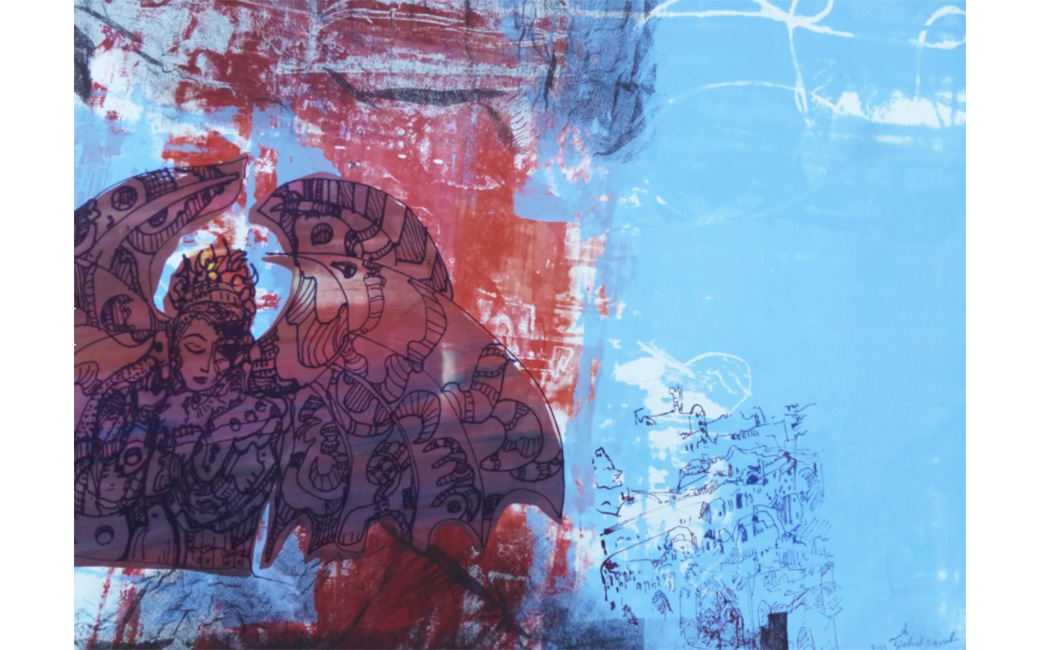 Nahid Navab is an Iranian-American artist based in the Washington, DC area. Born and raised in Iran, she moved to the United States in her early thirties. A seasoned world traveler and profoundly influenced by Persian history and literature, Navab skillfully blends cultures from across the globe to create artwork infused with a synthesis of heritage and contemporary urban life. Navab’s works present her belief that art is a conduit for social change. Art can intelligently light the path to find new solutions to society’s oldest problems. Her works reflect her interest in global unity and women’s issues. Four of Navab’s works are on view here. Goddess Hilla is a young ageless outspoken goddess, poet and storyteller. She is fighting for equality and justice. Mybody-Myself is inspired by acclaimed Iranian artist, Golshifteh Farahani, who pursued her goals and her career inspite of all the pressures and discrimination against women.