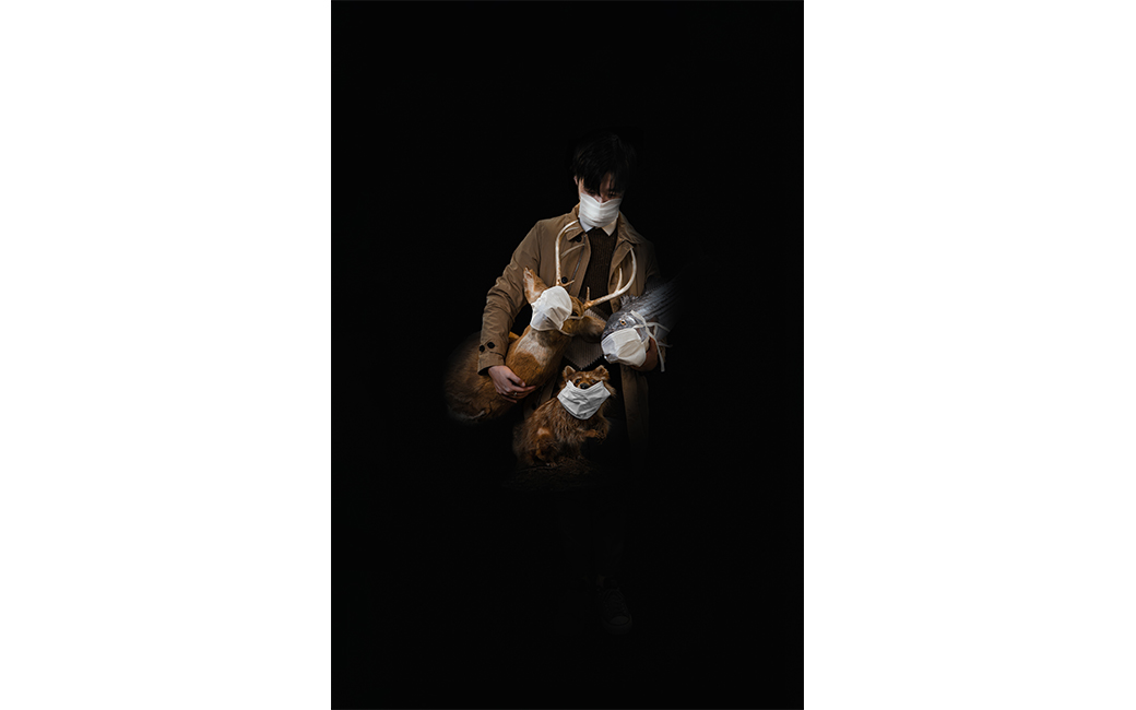 The novel coronavirus is a global pandemic. This new type of virus has infected over 2 million people in four months and has caused thousands of horrible chain reactions that include medical supply shortage, forced home isolation and temporary business shut downs. This COVID_19 series contains five photographs that address wildlife protection, forced isolation, and panic embedded in individuals. By juxtaposing different wild animals and models, COVID_19 series helps people to think about how people should treat and protect wild animals. Self made face masks on the models reveal the emergent medical supply shortage world-wide. By portraying sadness, fear, terror, absurdity, and dark humor, this surreal manifesto raises vital conversations around coronavirus, wildlife animals, and human community through an unconventional vision.