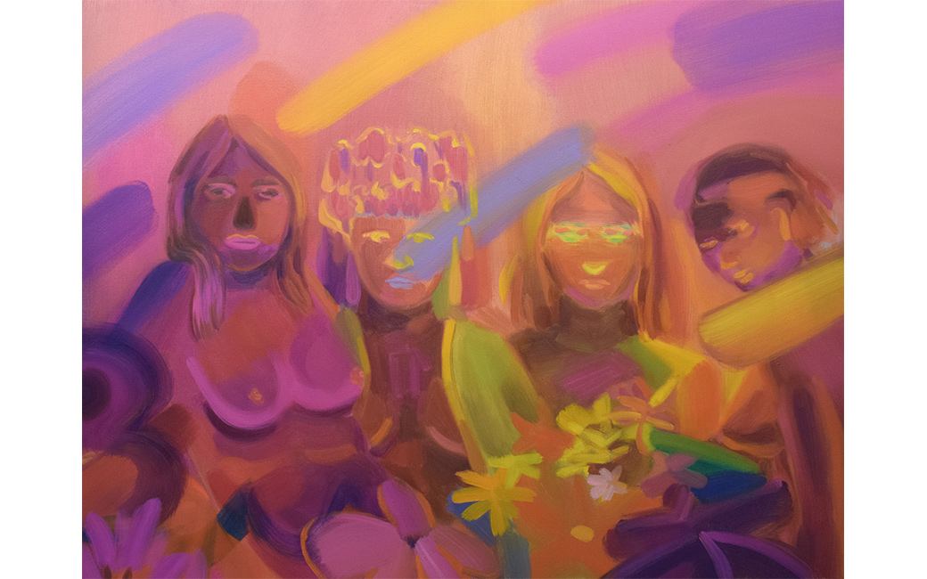 Goodbye My 20s (2019) represents my feelings about the memories of my past and the present moment. Turning 30 years old as a woman gave me a lot of thought and a bittersweet feeling. As of today, I have lived in America for 15 years, and I still feel like I’m floating in the air sometimes, but I also totally feel like I belong here. Music is a source of inspiration for me all the time when I work on my paintings. It brings me past memories and certain feelings. My life flows like music and everything is fine when the time goes by.