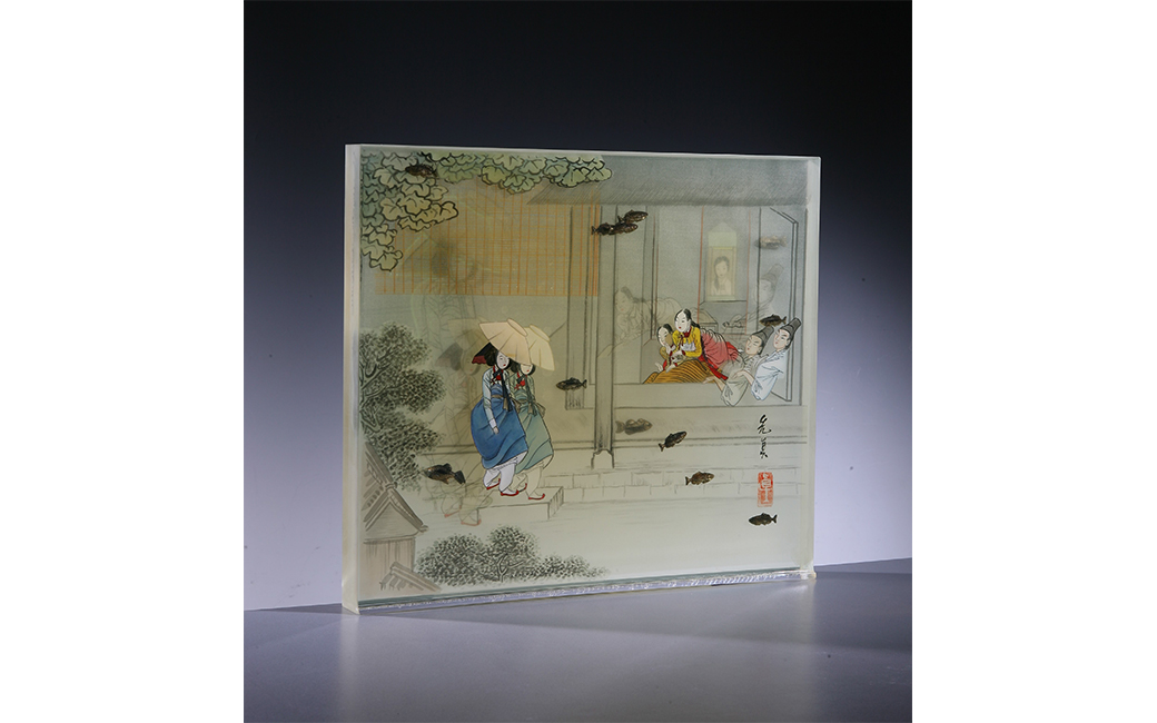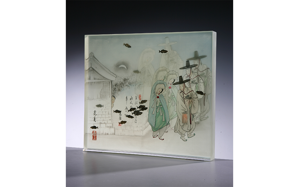 Five of Sunjin Lee’s works are on view here. Her Dear Moon pieces represent the Moon's new resilience and positive change for us. In Korea’s traditional heritage, if people have any wishes, they wish to the moon under the moonlight with the moon reflecting on the surface of their eyes.