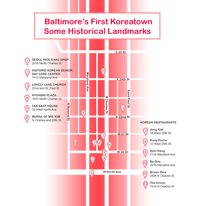 site of Baltimore’s first unofficial Koreatown — we paid particular attention to greater