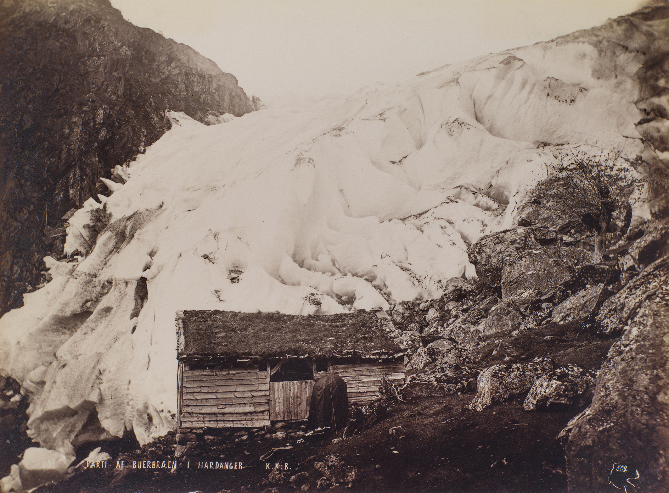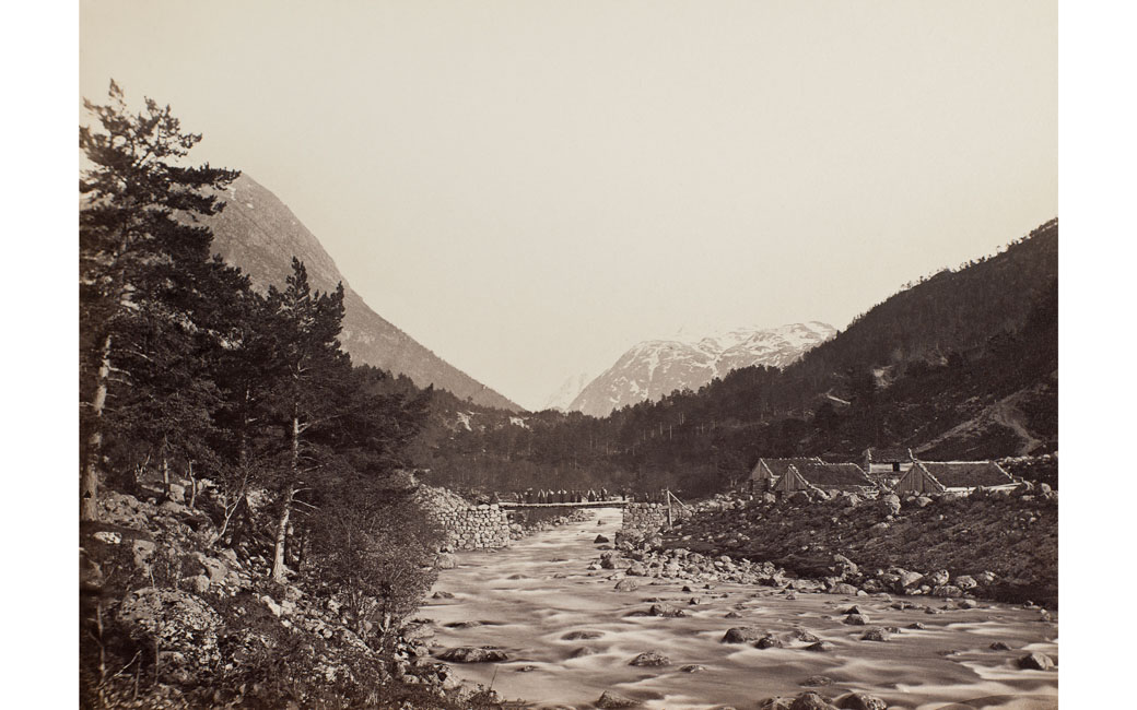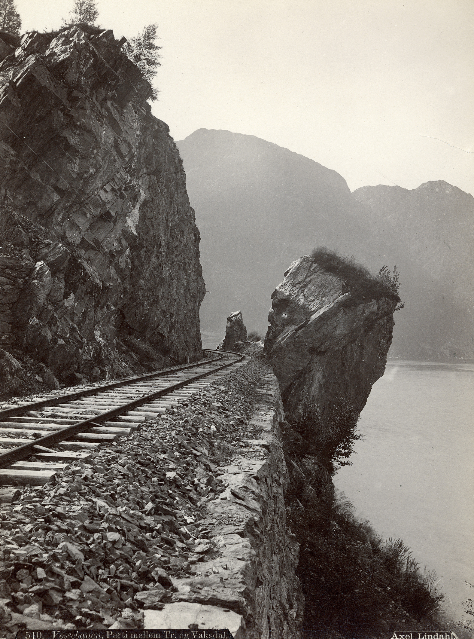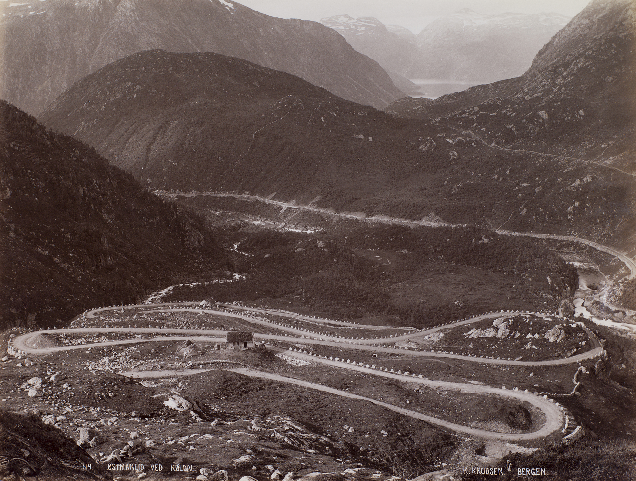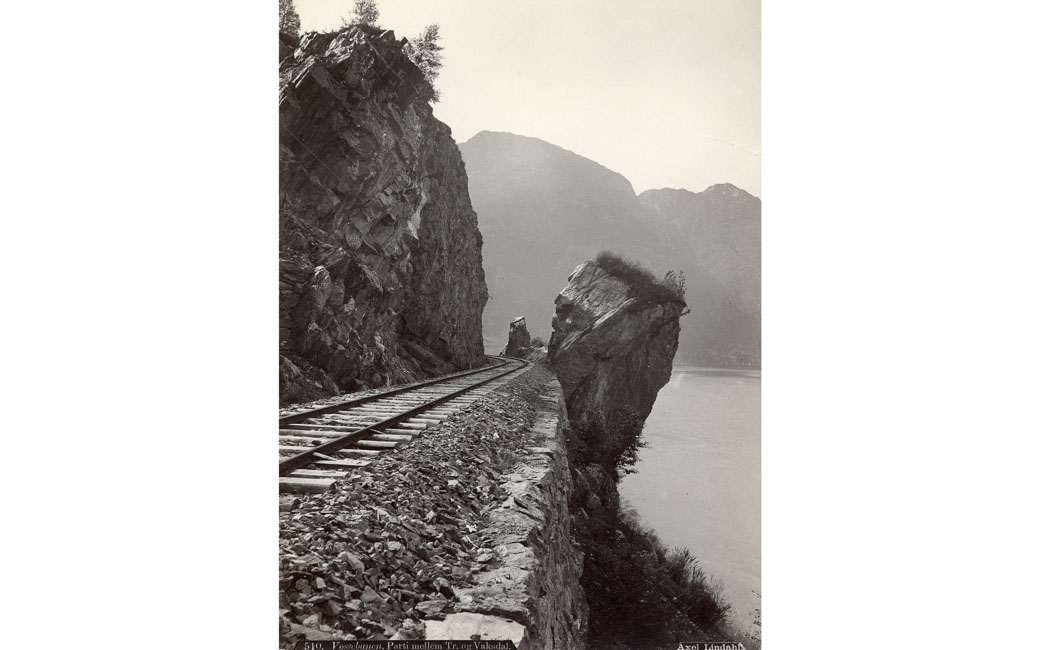 Despite a shared aesthetic interest in picturing majestic mountains, crystalline waters, and rushing waterfalls, a central difference between Norwegian and American early landscape photography is the role of private and governmental surveys. In the United States, survey expeditions facilitated mining of minerals, topographical mapping, and railway construction. Photographers hired by the surveys, such as Andrew J. Russell, Timothy O’Sullivan, and Frank Jay Haynes, made images that influenced how Americans view the nation and its landscapes and contributed to the creation of National Parks, beginning with Yellowstone in 1872. Although prospecting and construction of communications also took place in Norway, less is known about the photographic work resulting from these efforts. Instead, views produced for the tourism market by commercial photographers, such as Knud Knudsen and Axel Lindahl, influenced Norwegians’ understanding of their landscape through photography and contributed to a growing movement of Norwegian national pride.