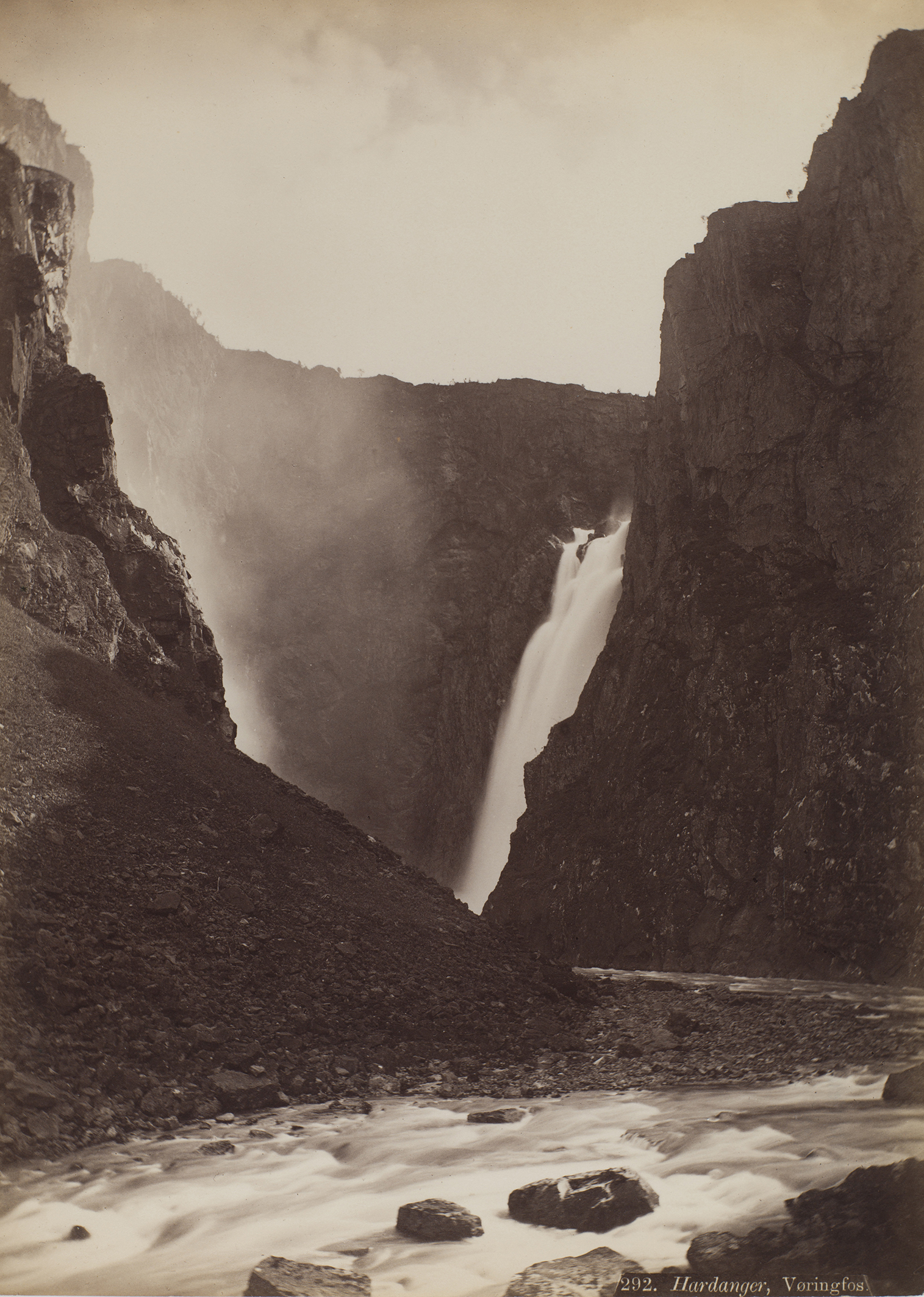 Across the West and Toward the North: Norwegian and American Landscape Photography examines images from the late nineteenth and early twentieth centuries, a historical moment when once remote wildernesses were first surveyed, catalogued, photographed, and developed on both sides of the Atlantic. The exhibition demonstrates how photographers in the two countries provided new ways of seeing the effects of mapping and exploration: infrastructure changes, the exploitation of natural resources, and the influx of tourism. As tourists and immigrants entered ”new” lands – seemingly unsettled areas that had long been inhabited and utilized by Indigenous people in both countries—they “discovered” beautifully remote landscapes across the west and toward the north.