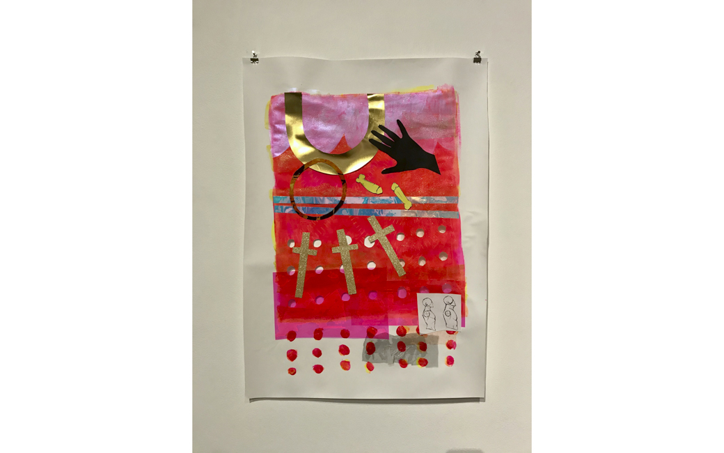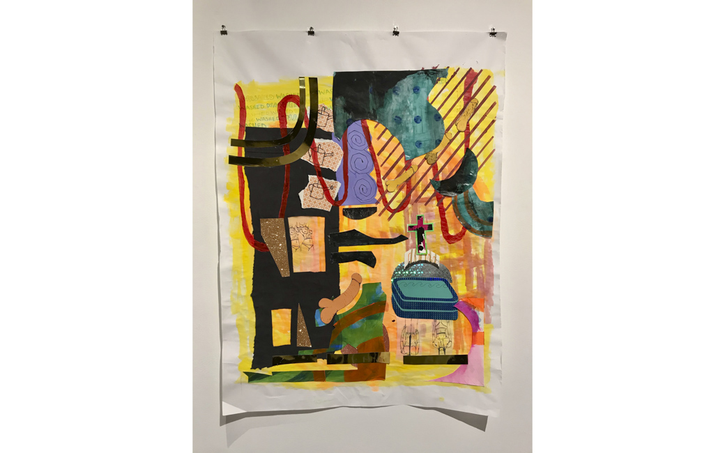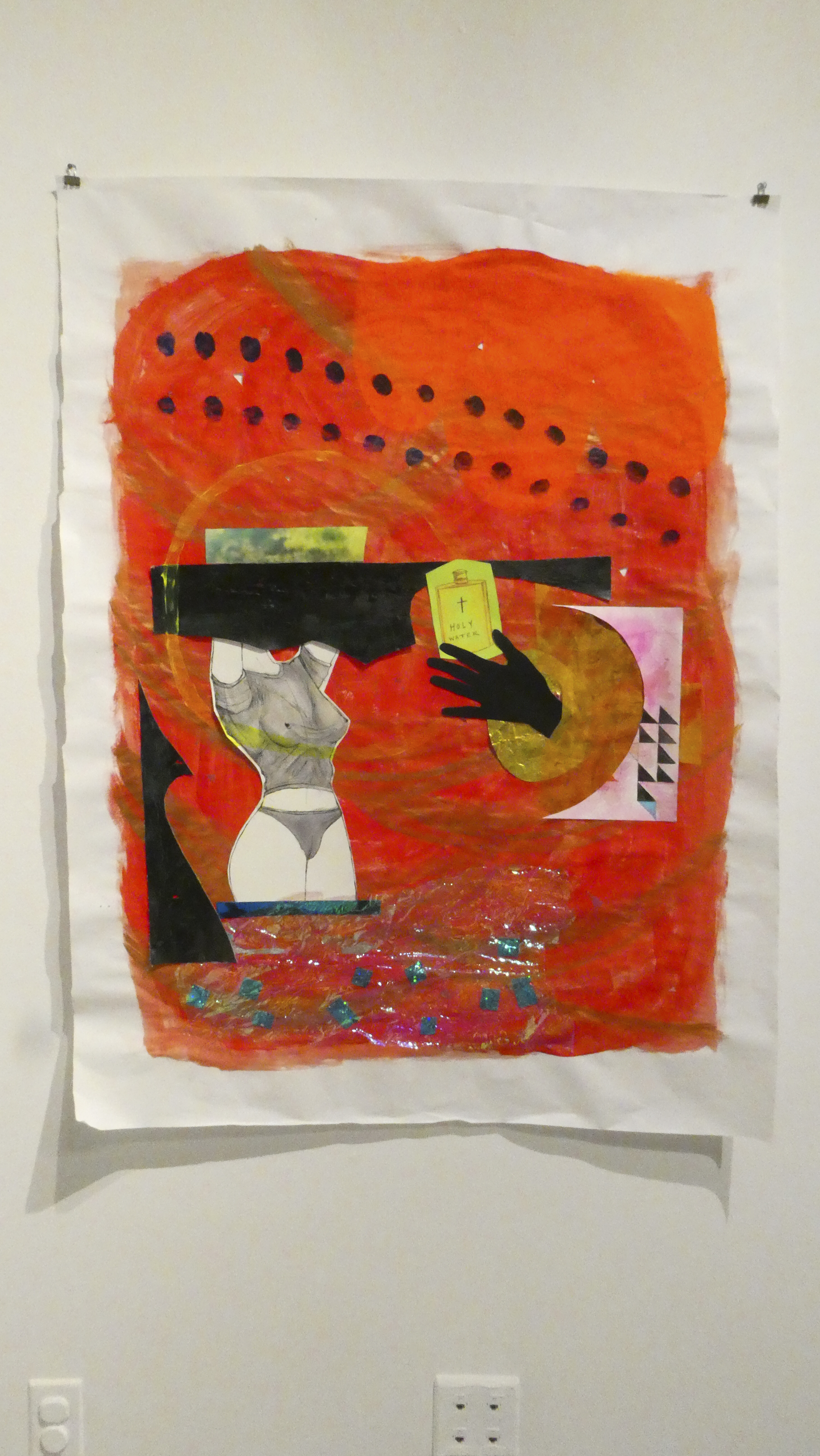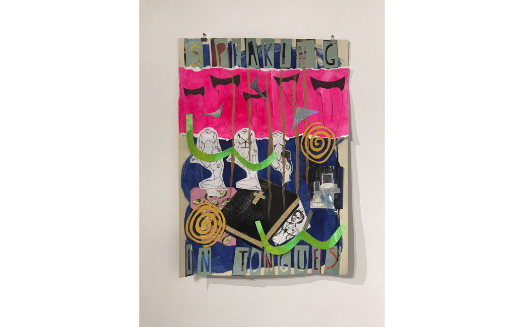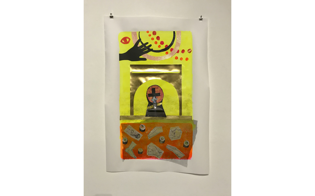 Doyle explores complexities of morals and ethics that results from growing up between vastly different environments. She uses collage to depict imagery that seemingly opposes itself to show the internal dilemmas that comes with an identity full of dichotomies.