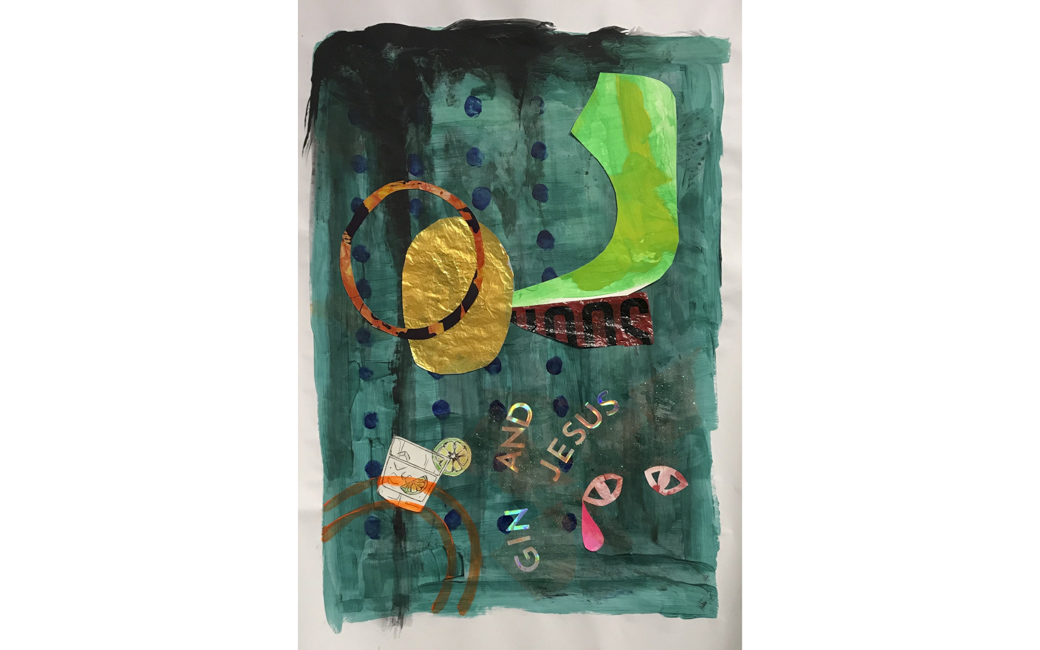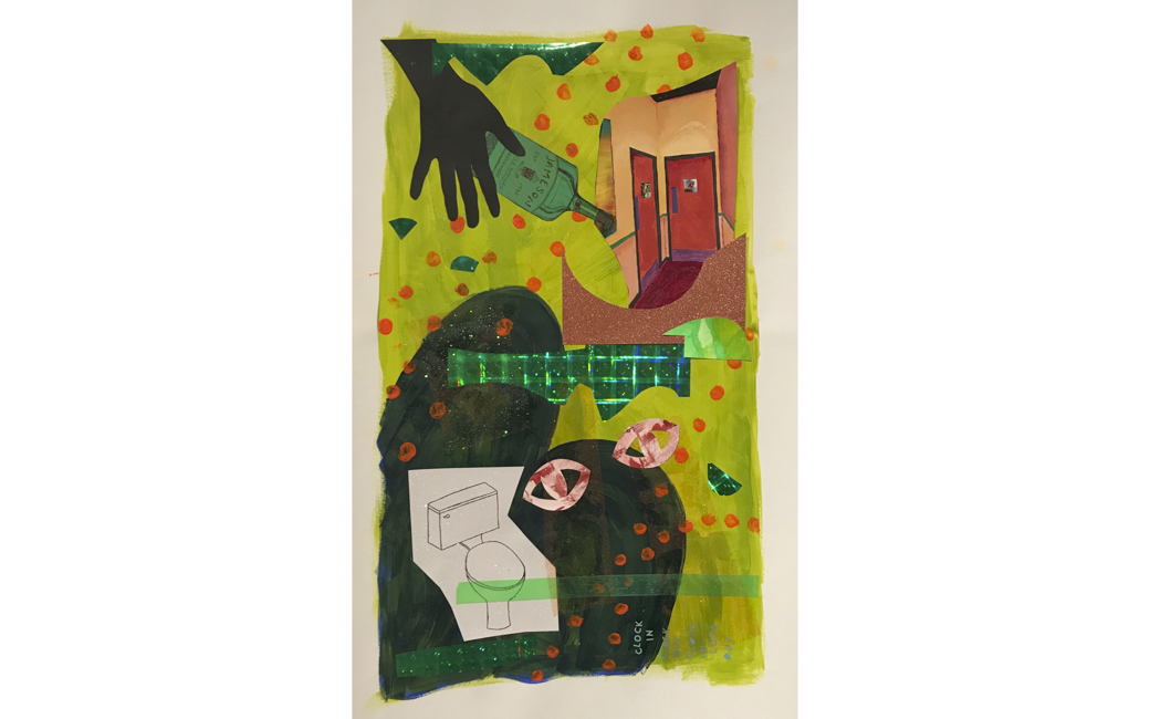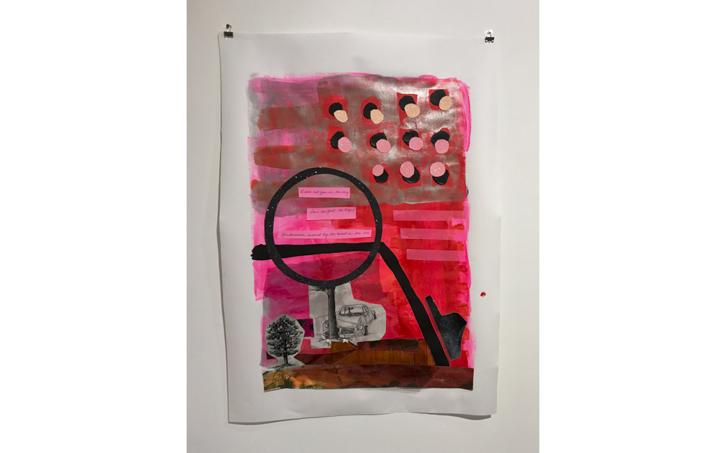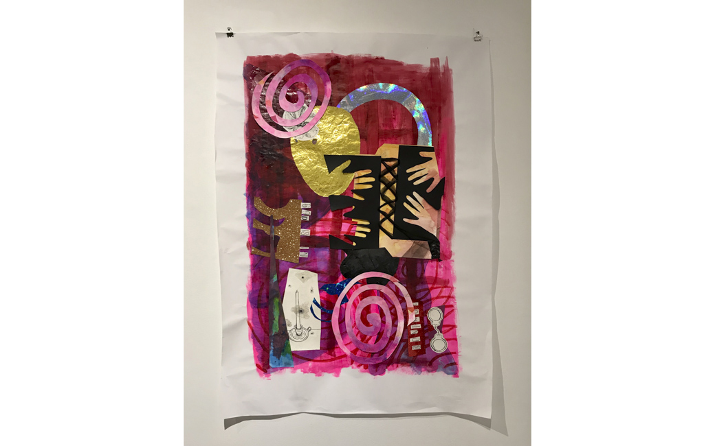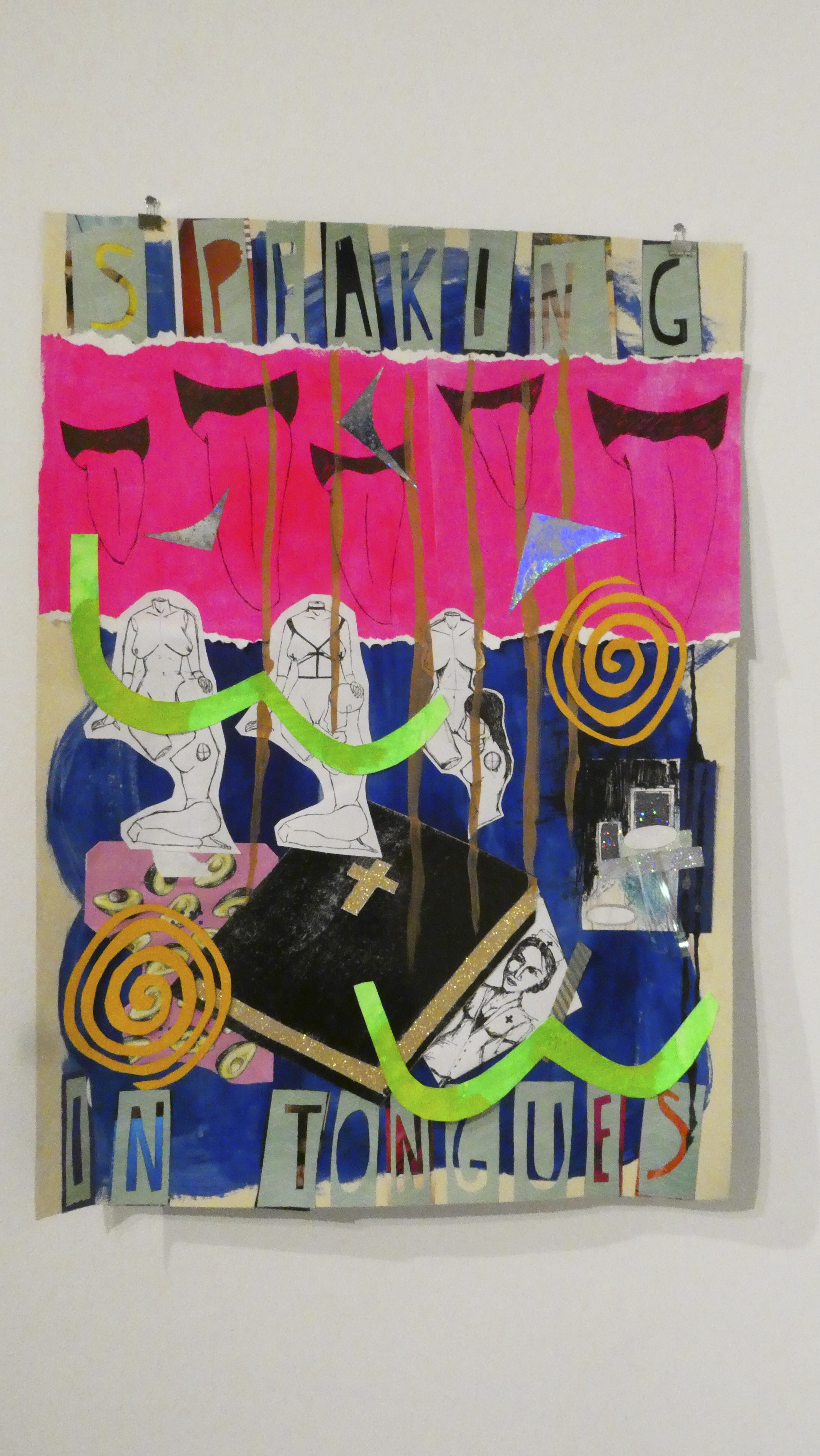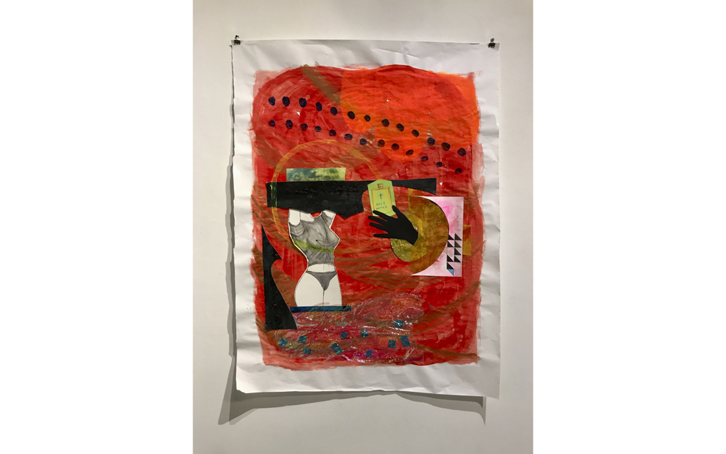 Doyle explores complexities of morals and ethics that results from growing up between vastly different environments. She uses collage to depict imagery that seemingly opposes itself to show the internal dilemmas that comes with an identity full of dichotomies.