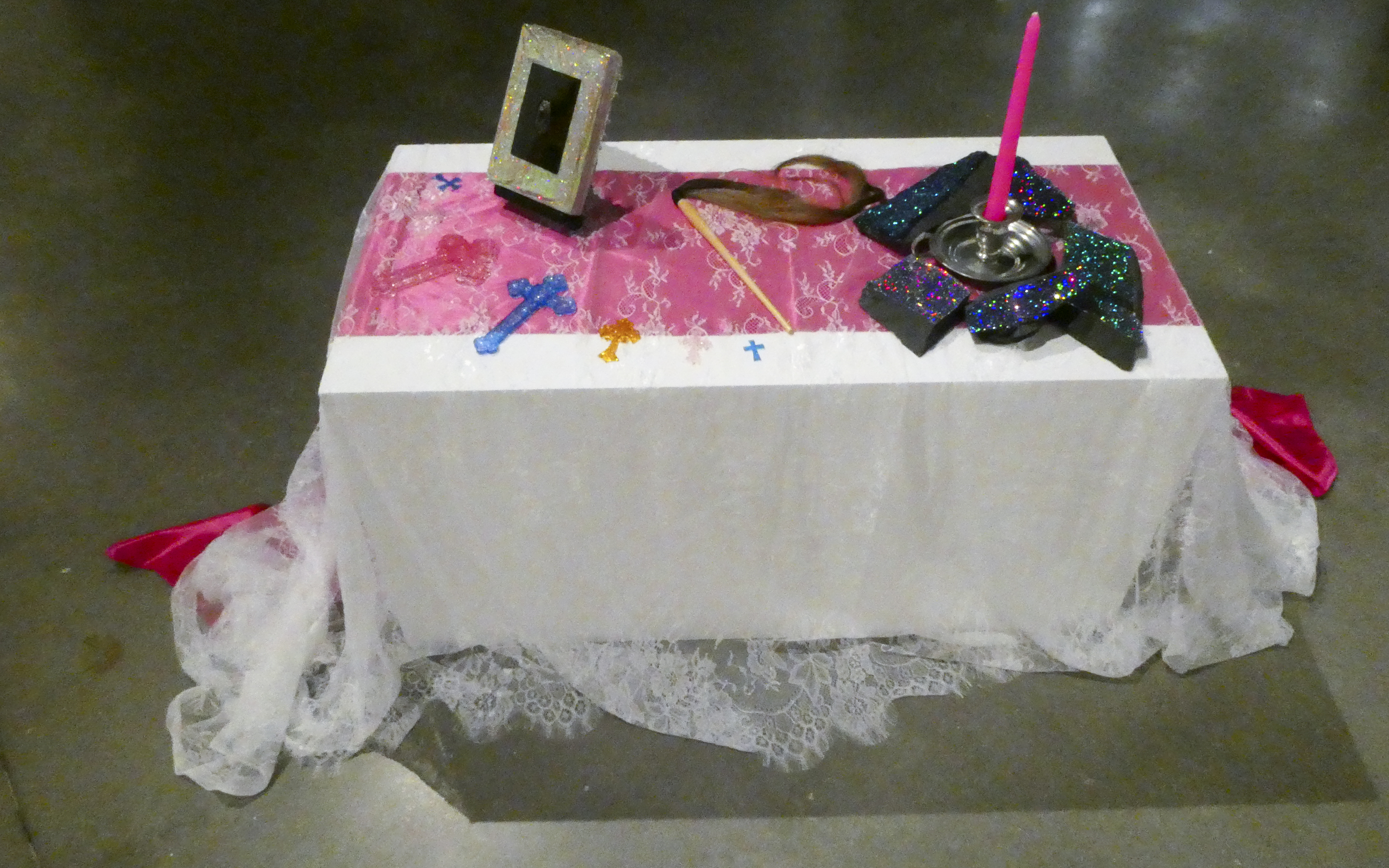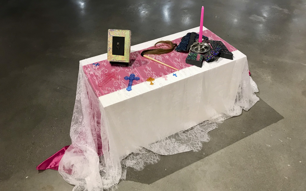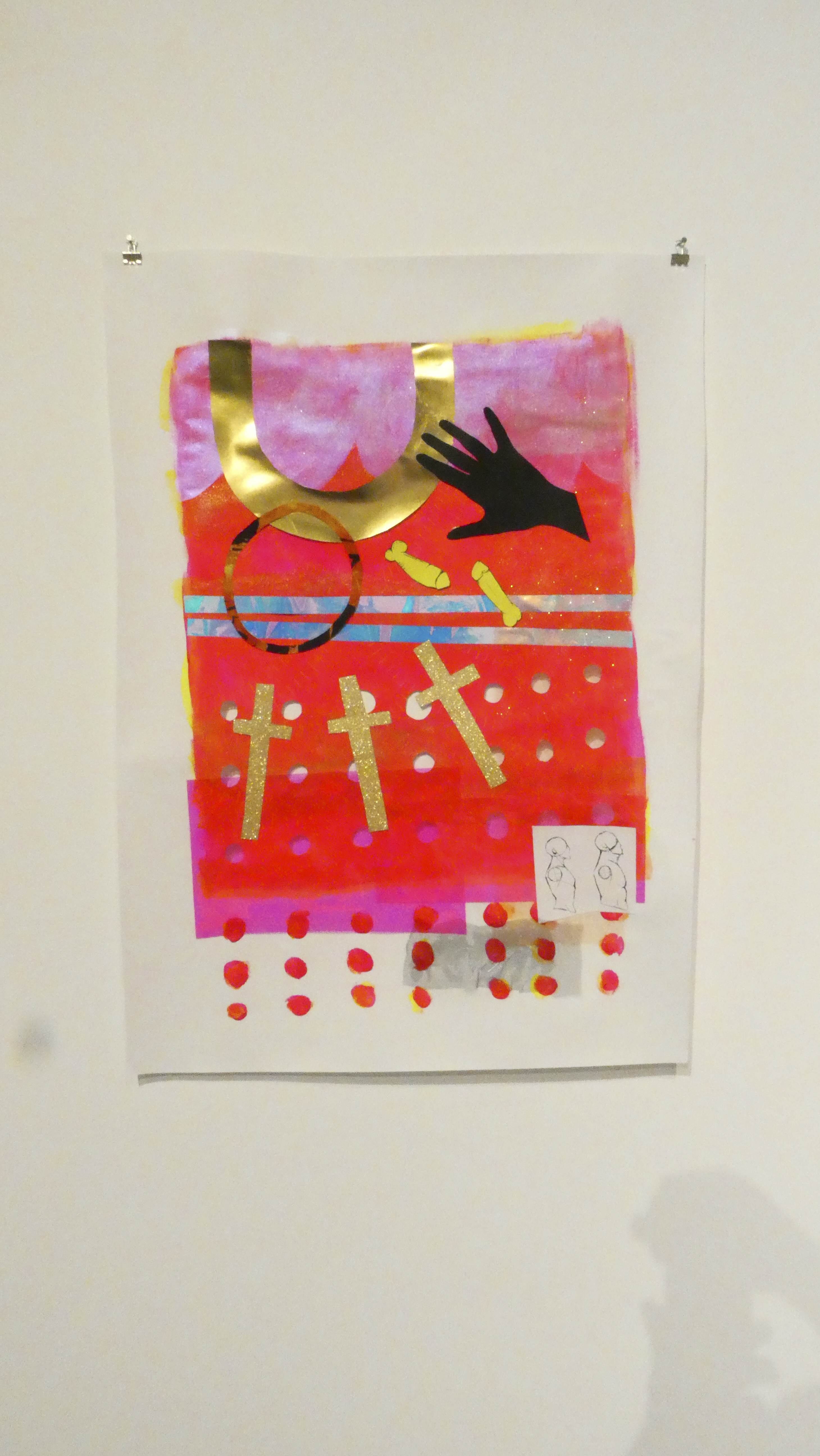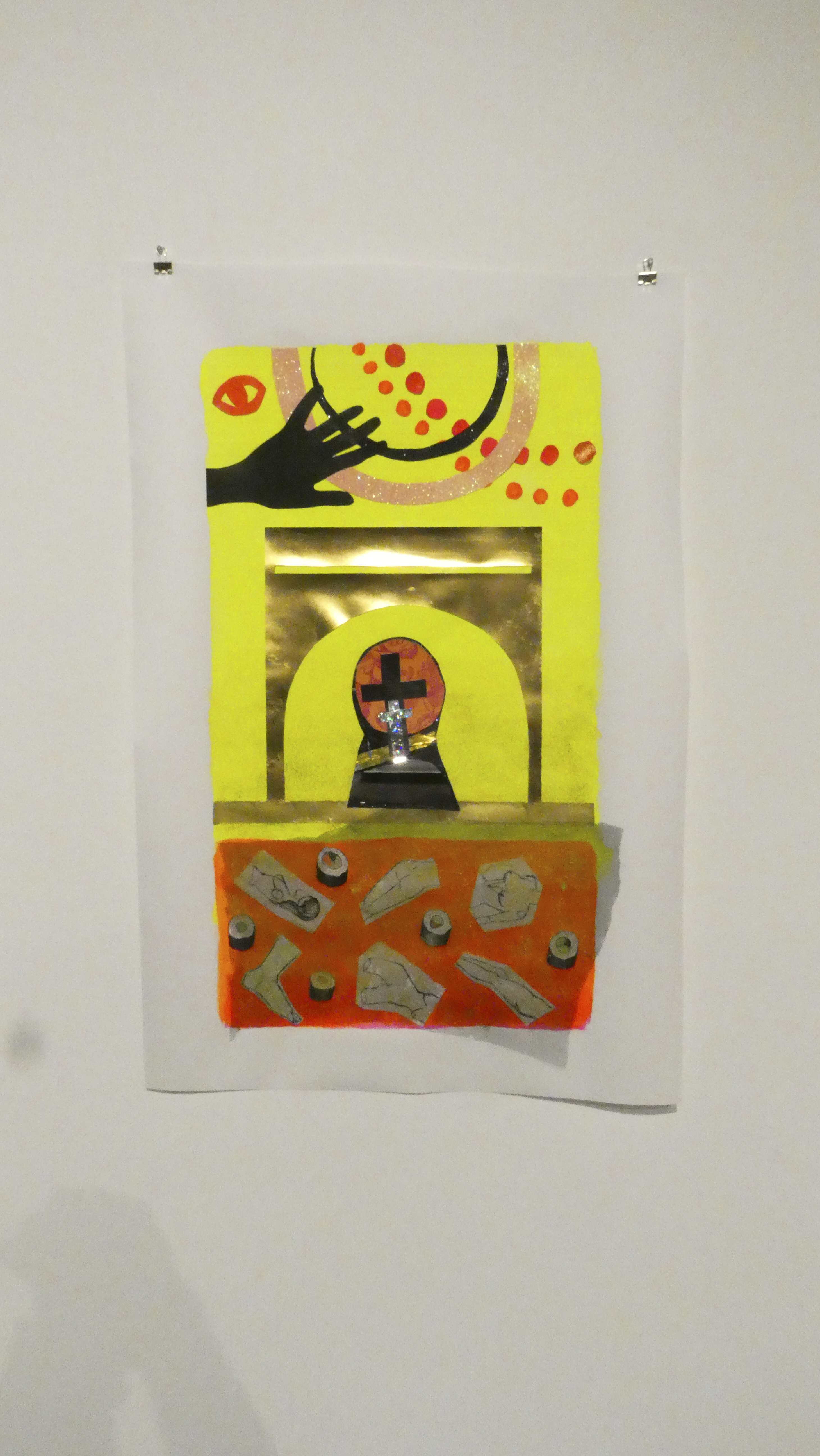 Doyle explores complexities of morals and ethics that results from growing up between vastly different environments. She uses collage to depict imagery that seemingly opposes itself to show the internal dilemmas that comes with an identity full of dichotomies.