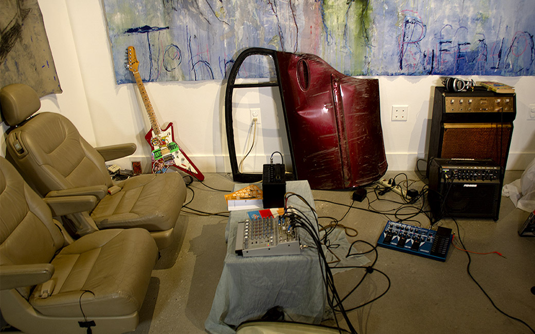 Livingston blends fact and fiction in this large-scale multimedia installation to present a fractured memoir that draws on the mythic American West and the counter-culture experience of the past half century. He assumes the role of an unreliable narrator in order to exhume a rich history both cultural and personal.