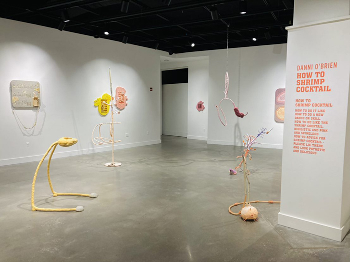 Baltimore-based artist Danni O’Brien works with mixed media, creating three-dimensional hard and soft objects that come together in an immersive installation.