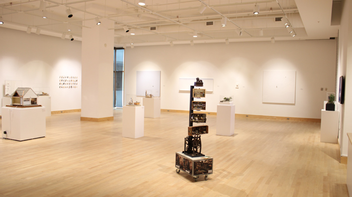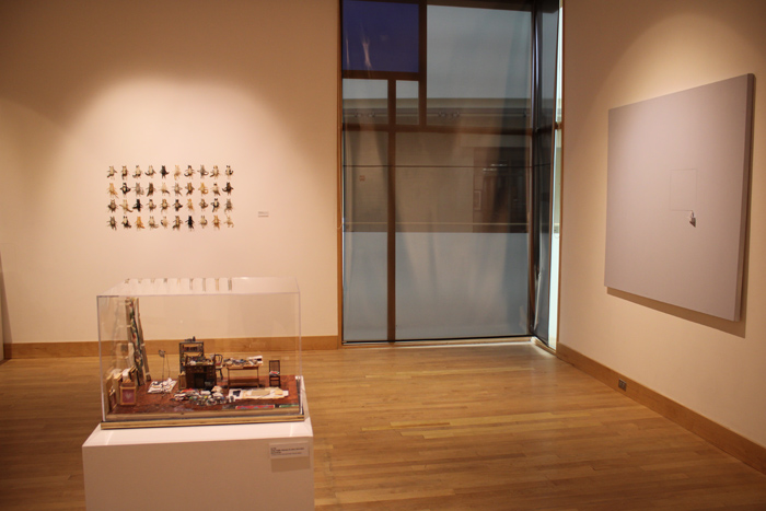 Squee /skwē/: a cry of delight and excitement. The term, purview of internet fans, is likely a portmanteau of “squeal” and “glee,” suggesting the desire to squeeze. A high-pitched sound emitted when one is emotionally delighted, just preceding euphoric overload, it is the explosion of sound that emits from a mouth gushing over something delectable, like air leaving a balloon. Originating as an animal sound made by mice or pigs in fairy tales, the word has recently jumped species, utilized primarily for all things adorable, when dignified delight is simply not enough. The artists in this exhibition imbue their minute marvels and tiny models with magnitudes of meaning.