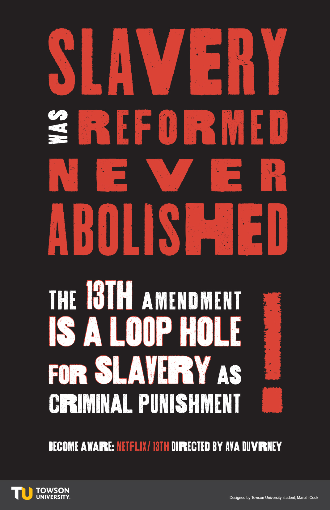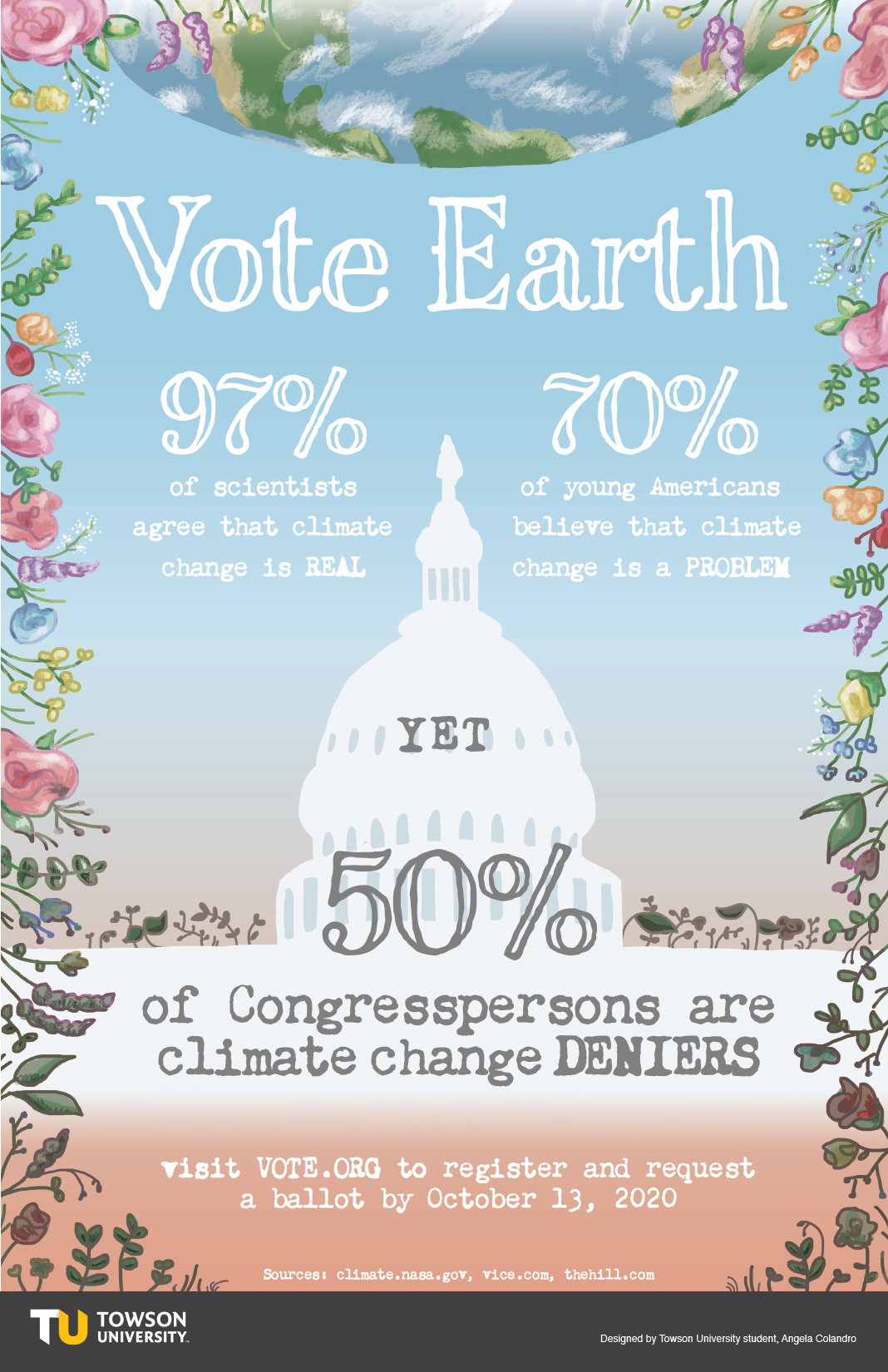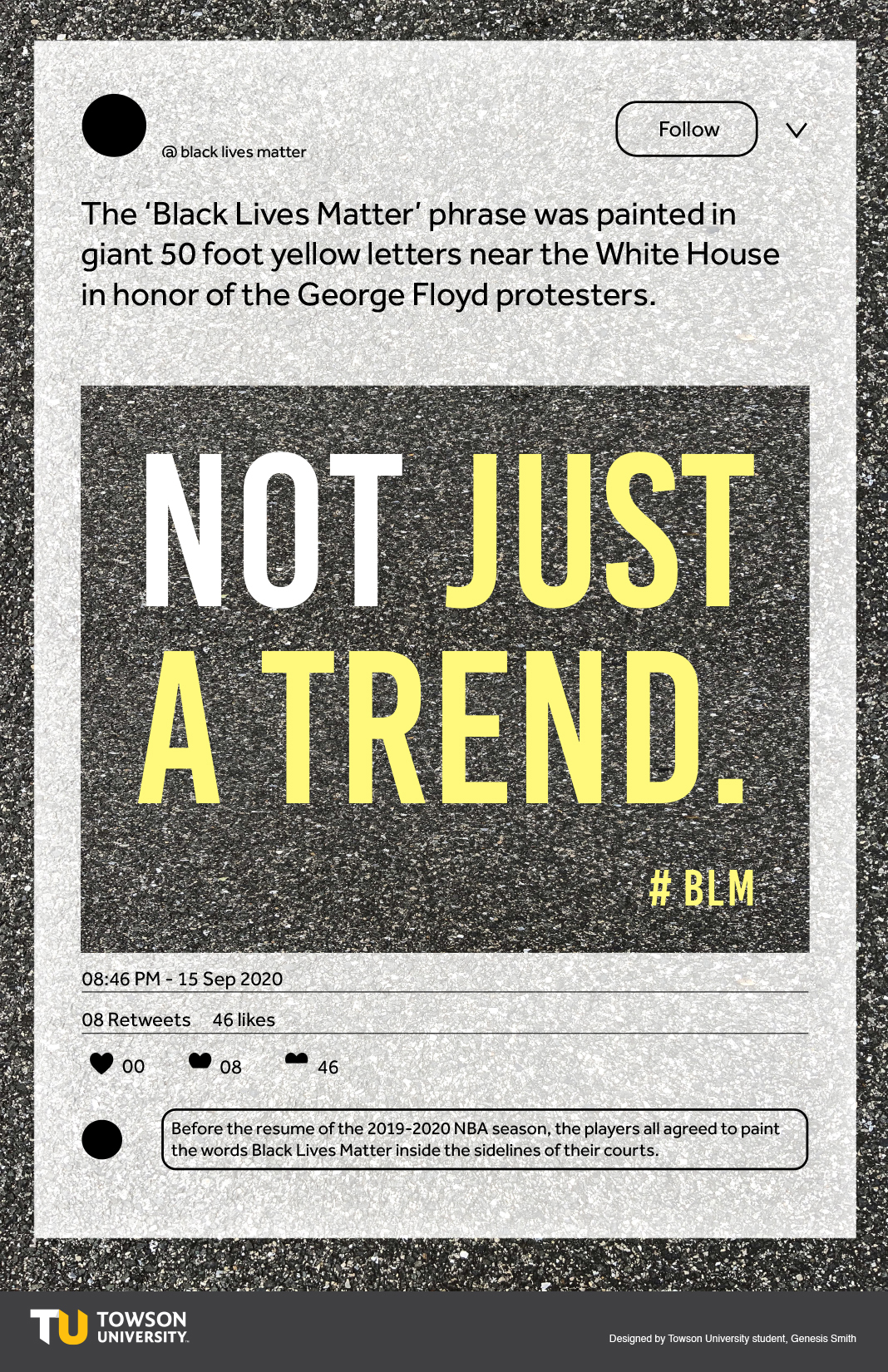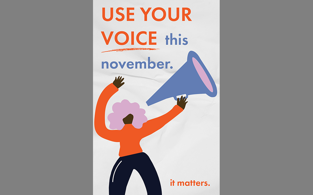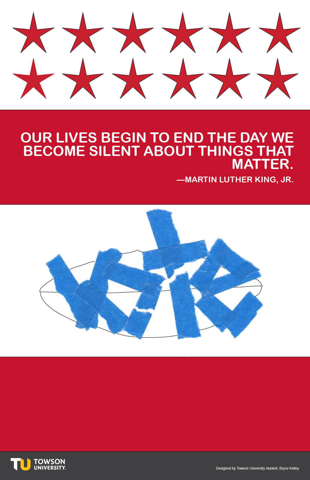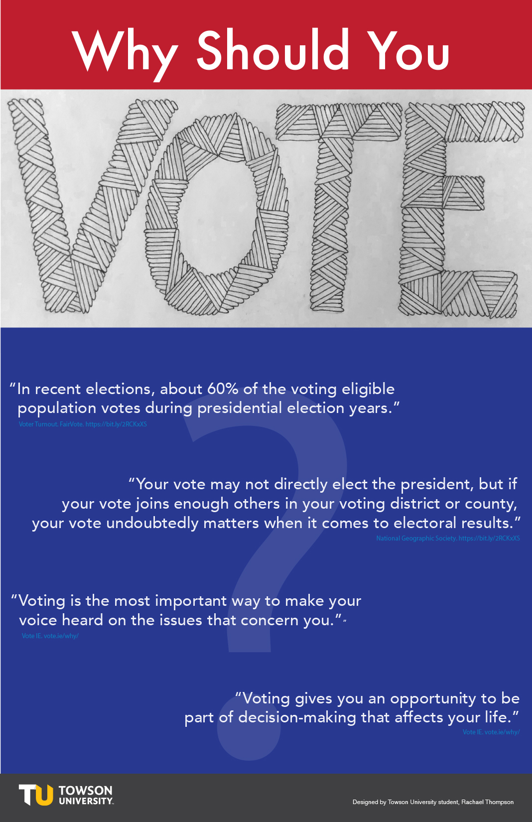 This fall, Towson University graphic design students are actively engaged in design citizenship; researching issues, listening, holding dialogue, and designing posters supporting the Black Lives Matter movement and voting in the 2020 election. Through the unique visual impact of posters, this exhibition seeks to inform, advocate, and call people to action.