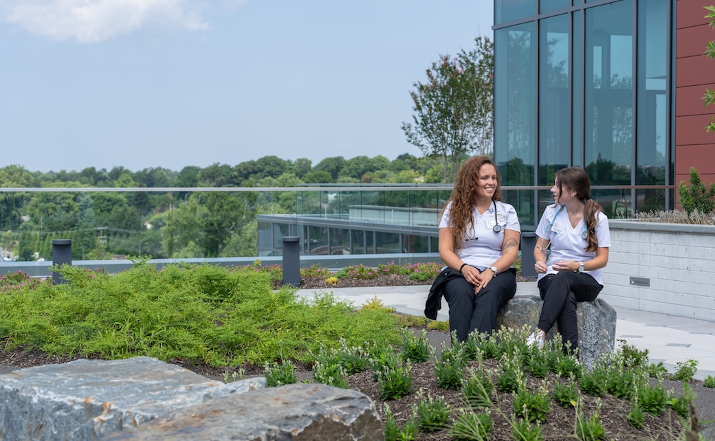 In addition to the classrooms, labs and simulation centers inside, the building has three rooftop gardens. This includes the respite garden on the sixth floor that supports students’ and faculty’s self-care as they encounter the high intensity of healthcare careers.