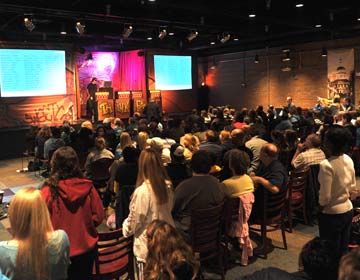 The Den at Paws, located in the University Union building, features 20’ x 30’ stage, in-house lighting, carpeted floors, and a nightclub/festival atmosphere. Parking is available at the adjacent Union Garage.