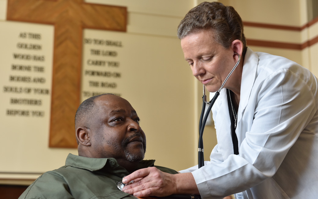 Each semester, undergraduate students in Lashley’s public health nursing class and other volunteers help her host a health fair at the Mission, and graduate students create and implement wellness programs for its residents.