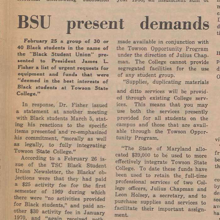 Inspired by efforts at other American colleges and universities to come to terms with a legacy of racial inequality in American high education, a team of Towson University researchers has begun a multi-year project to investigate and publicize this institution’s exclusionist past and its ongoing efforts to diversify.