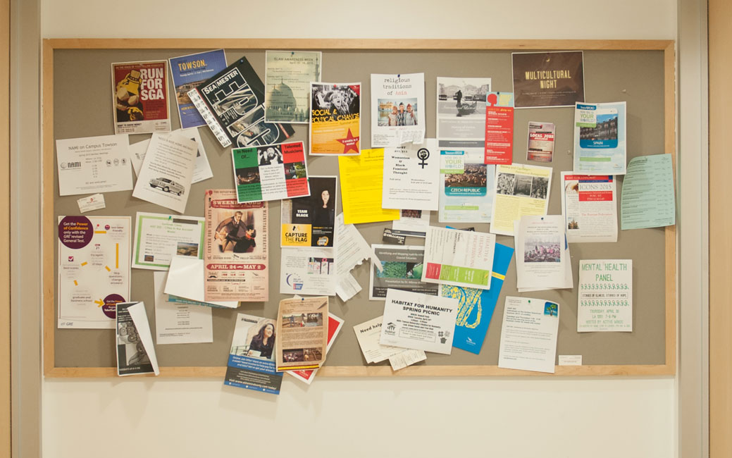 - In the LA building, fliers can be posted on the large tan cork bulletin boards located throughout the classroom hallways, between the bathrooms and in the faculty office hallways near the lounge areas and Alternative Learning Spaces (ALS). YOU MAY NOT post on boards reserved for a specific department or, on the first floor, for research posters.