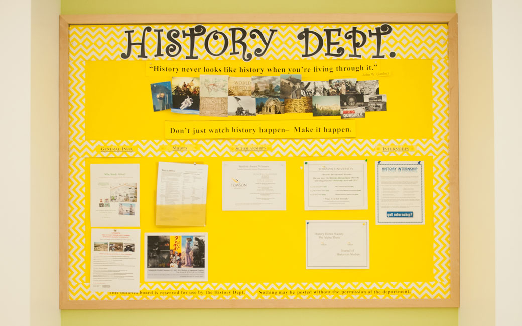 - Fliers and/or digital signage to be posted must be authorized by someone from the CLA Dean's office by emailing CLA AT_TOWSON.