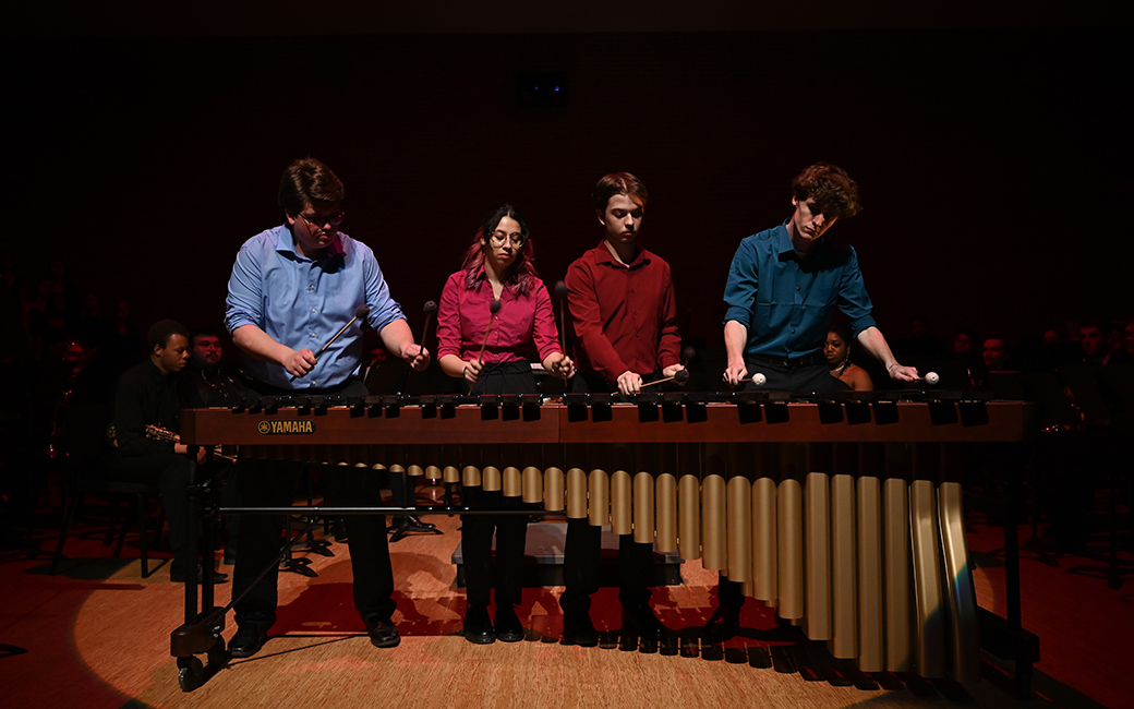 Discover the vibrant performance ensembles of the Towson University Department of Music! Our program boasts a diverse array of groups, including a symphony orchestra, concert wind bands, several choirs, a dynamic "Music for the Stage" program, jazz ensembles, and numerous small instrumental ensembles. Open to both music majors and non-majors, our student musicians bring their talents to life in dozens of concerts each semester. Explore the links in the menu for detailed information about each ensemble. Most ensembles require an audition.  Audition information is provided below. Join us and be a part of our musical community!