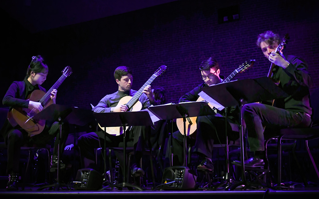 Guitar ensemble classes at Towson University are an integral part of the guitar program. Students attend weekly sessions designed to develop important skills including group listening, integrating into an ensemble, sight reading, and musicianship.