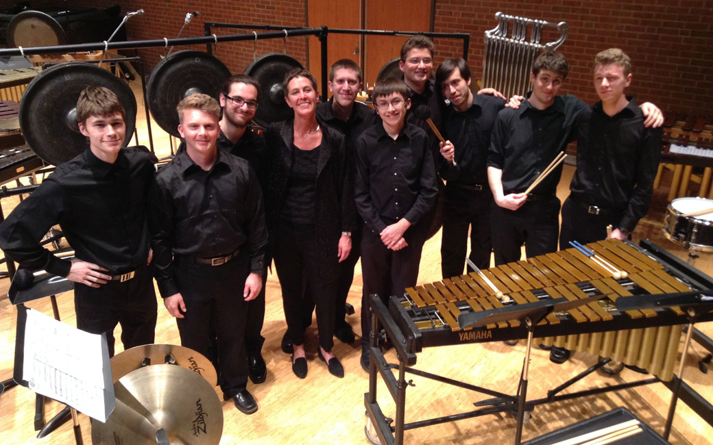 Percussion Ensemble provides students with the opportunity to work closely with their private instructors and visiting artists in a chamber setting, opening doors of communication and expression that greatly enhance musical and professional growth. The atmosphere is both serious and fun; this allows for the highest possible levels of performance and commitment.