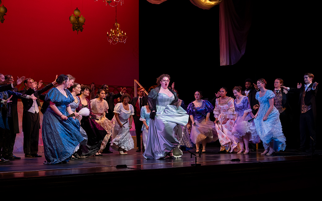 Music for the Stage is a faculty led student ensemble within the Department of Music at Towson University. Music for the Stage was created in 1998 as a training ground for voice performance, vocal music education majors, and others to experience a wide variety of vocal music suitable for stage performance including opera, musicals, art songs, cabaret, and other genres of vocal music. The ensemble has performed numerous evenings of workshop scenes as well as fully staged productions including Die Dreigroschen Oper, Dido and Aeneas, Riders to the Sea, Così fan tutte, The Magic Flute, The Face on the Barroom Floor, A Hand of Bridge, The Medium, Into the Woods, A Little Night Music, The Old Maid and the Thief, The Telephone and many others.
