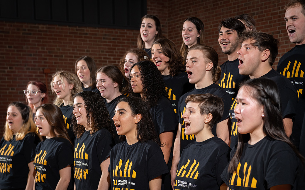 The Towson University Chorale is a mixed-voice ensemble dedicated to the performance of choral music from all styles