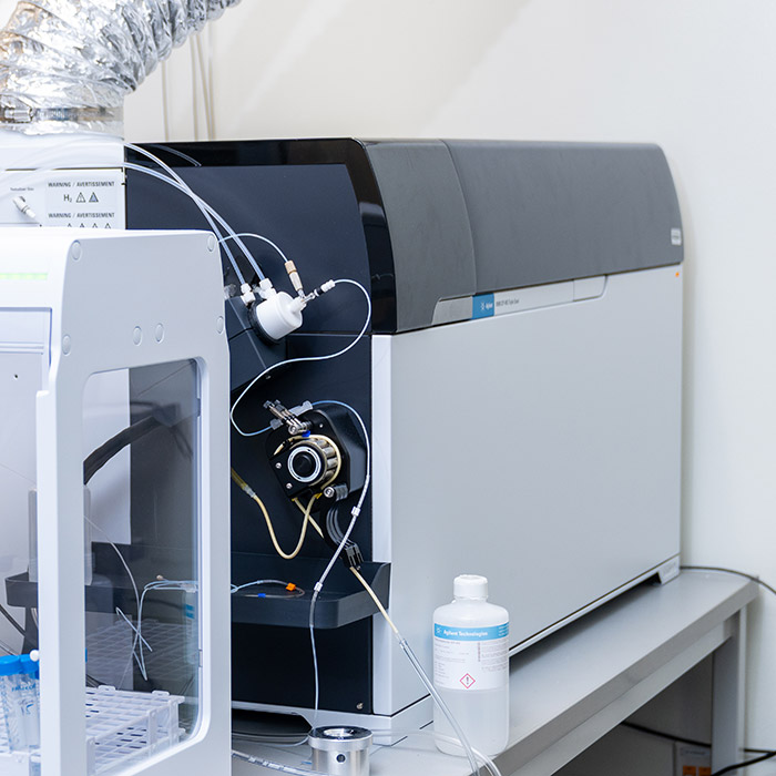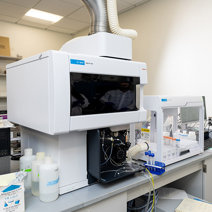 The Agilent 8900 ICP-QQQ (triple quadrupole) system measures concentrations of inorganic elements into the low part-per-trillion (ppt) level as well as isotopic ratios. An auto-sampler allows for unattended operation.