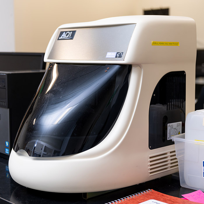 The Seal AQ1 Discrete Analyzer is a versatile, automated spectrophometric instrument that can quantify a wide variety of elements and/or compounds in liquid samples. Currently we have methods for determining silica, orthophosphorus, total phosphorus, nitrogen from ammonia, and nitrogen from nitrate + nitrite.