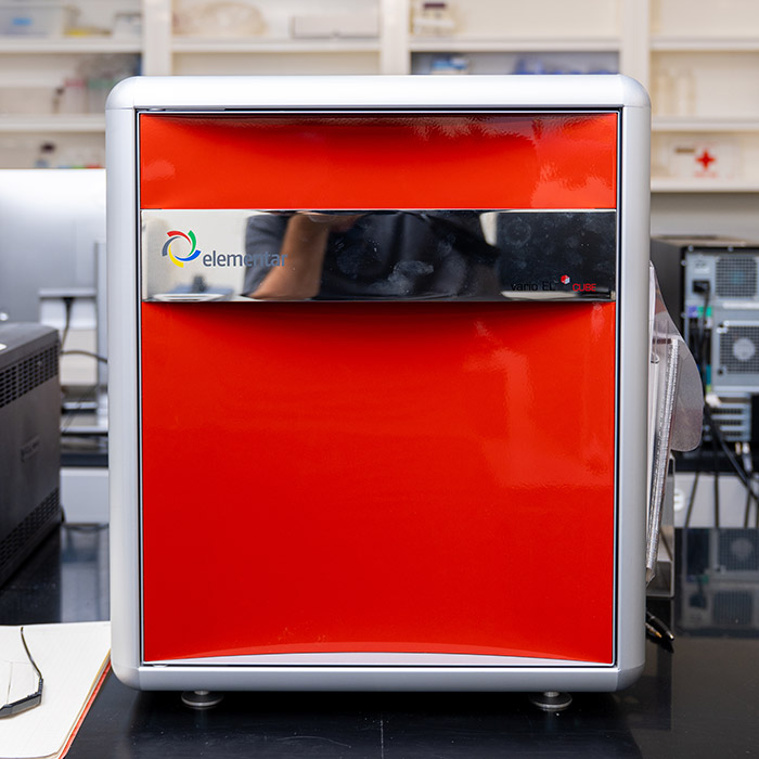 The Elementar EL Cube CNS Elemental Analyzer quantifies total carbon, nitrogen, and/or sulfur in solid samples.