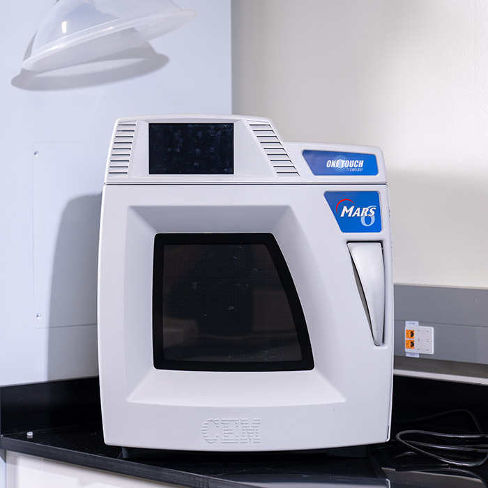 The CEM Mars 6 Microwave Digestion System digests solid and liquid samples for further analysis.