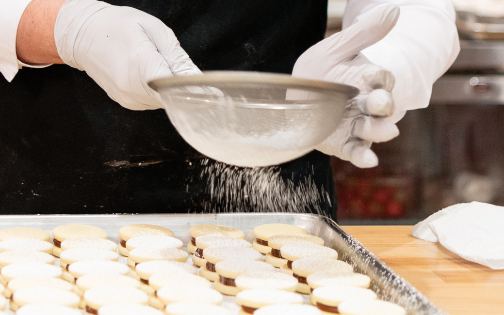 Known for their lavishly decorated cakes, topped with homemade meringues, fresh fruit and edible gold, Dulceology began with alfajores—a sandwich cookie traditionally filled with dulce de leche. The menu expanded to include gluten-free versions of the cookie and of a quesadilla—a rich, buttery quick bread—after Nicole discovered she had a gluten intolerance and was determined to keep making her favorite recipes.