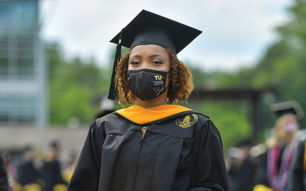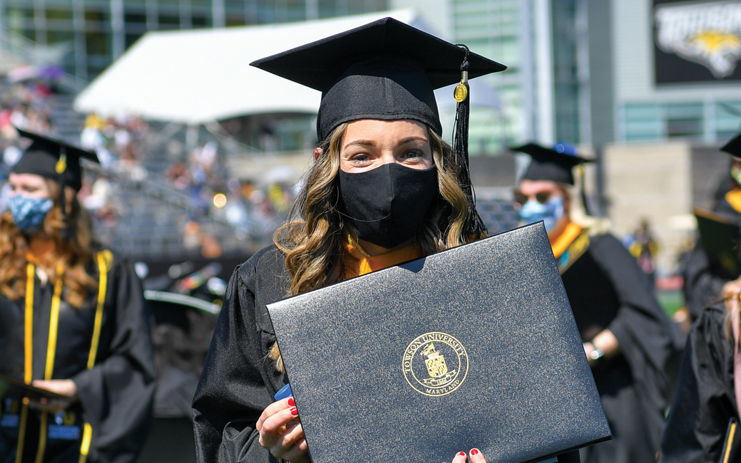 “To walk across the stage and have that sense of pride within and to have people cheering for you was awesome,” she says. “It was nice to have friends from other majors cheering me on. That sense of pride of just being a Towson Tiger, that we did it.”