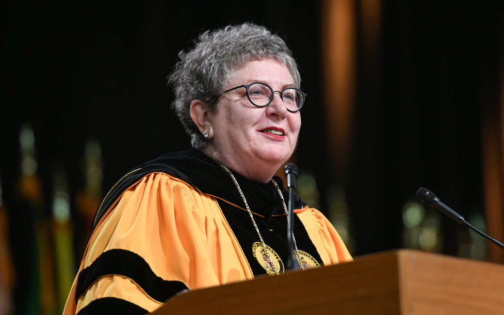The 2020/2021 university Commencement speaker was leading health care executive Nancy Schlichting, who spoke to the College of Health Professions on May 17. She told grads, “Change is desirable and an inherent part of health care, as we always strive to do things better. The dynamic nature of health care will keep you challenged and engaged throughout your life.”