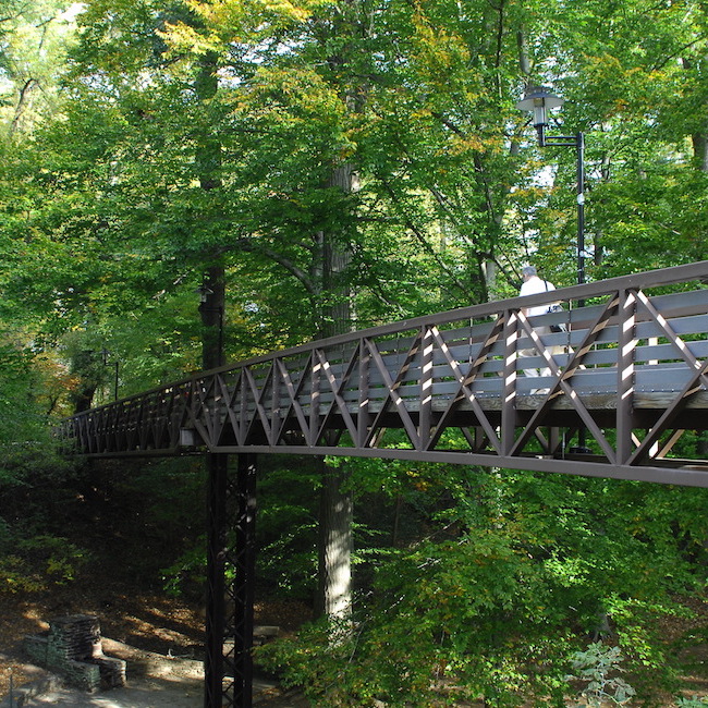 The Glen bridge is being replaced after an annual inspection resulted in recommended maintenance. Considering the cost of maintenance and the age of the existing bridge, replacing the bridge entirely was the most efficient long-term solution. The existing bridge will not available for use during the fall semester. It will be deconstructed in October and replaced with a new, wider bridge that will accommodate more pedestrian traffic. The bridge will have a similar look to the one between the Union Garage and patio. It will be custom-fabricated off-campus this fall and erected in the winter, opening for the spring semester.