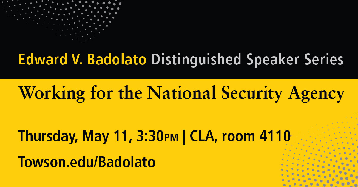 The Edward V. Badolato Distinguished Speaker Series is endowed by the late Colonel Edward V. Badolato, USMC (Ret.). Colonel Badolato graduated from Towson University and served under former Presidents Reagan and Bush as Deputy Assistant Secretary of the Department of Energy, specializing in counter-terrorism and emergency planning.