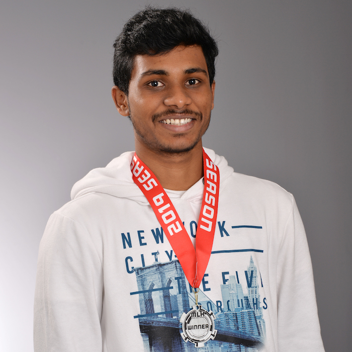 Sophomore computer science major Santhosh Ramachandran took home the grand prize at the 2018 HackUMBC competition the same weekend.