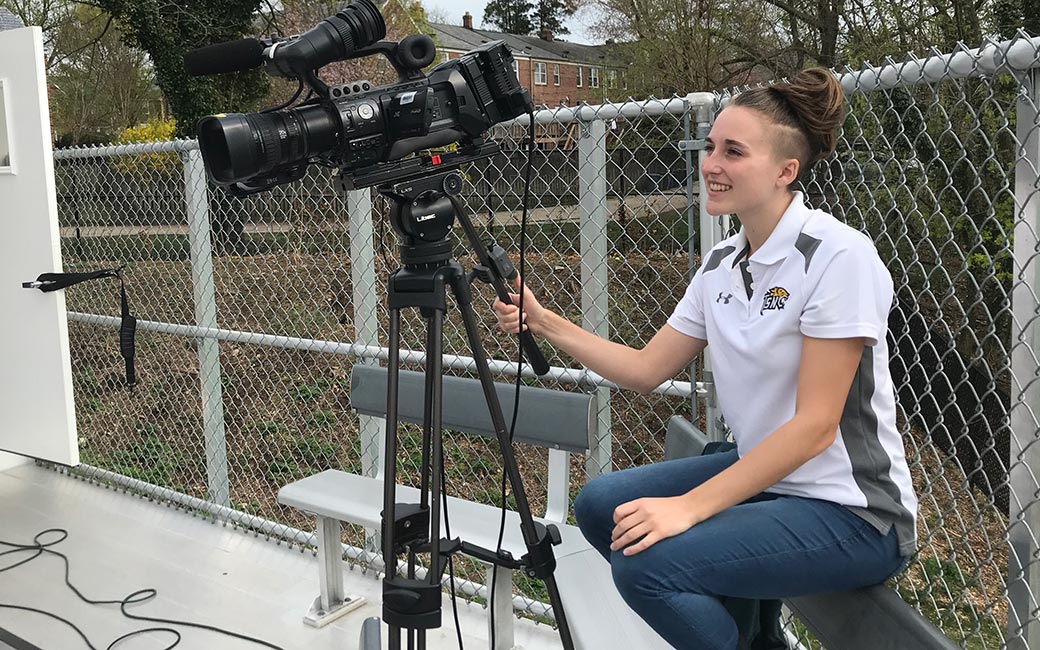 After Commencement, Ederer plans to work as a freelancer and grow her existing connections in the field. Networking helped her land a contract fill-in position covering Major League Baseball for Mid-Atlantic Sports Network. GoodFight Media has asked her to continue freelancing once her internship concludes. One day she hopes to work for the NFL or MLB, film the Olympic Games, or work camera on a Food Network program.